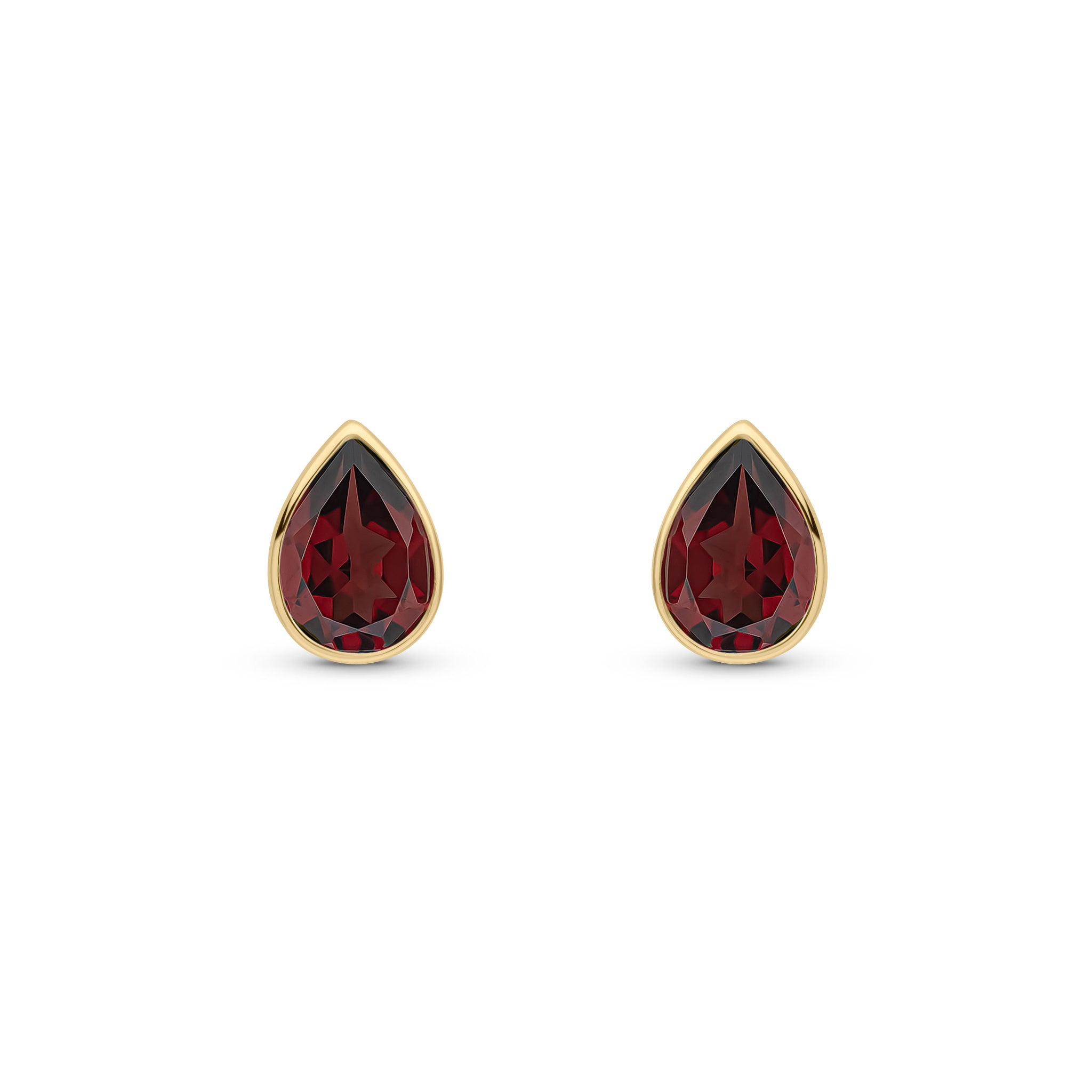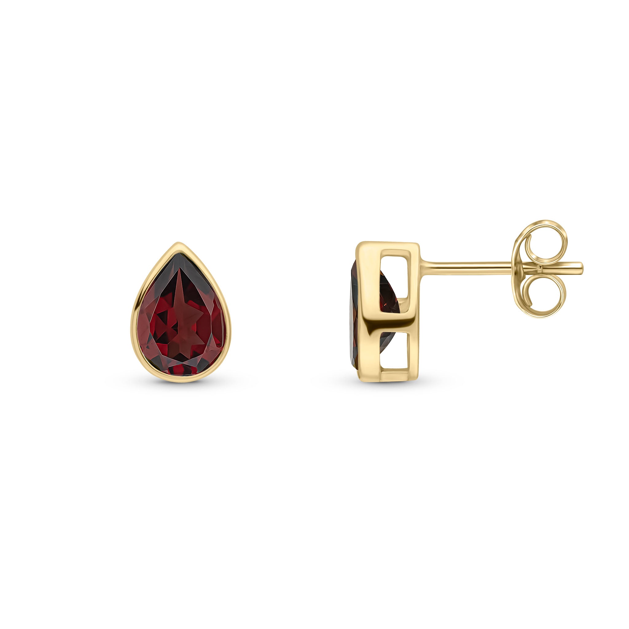9CT Yellow Gold Pear Shaped Garnet Rubover Stud Earrings 7x5mm