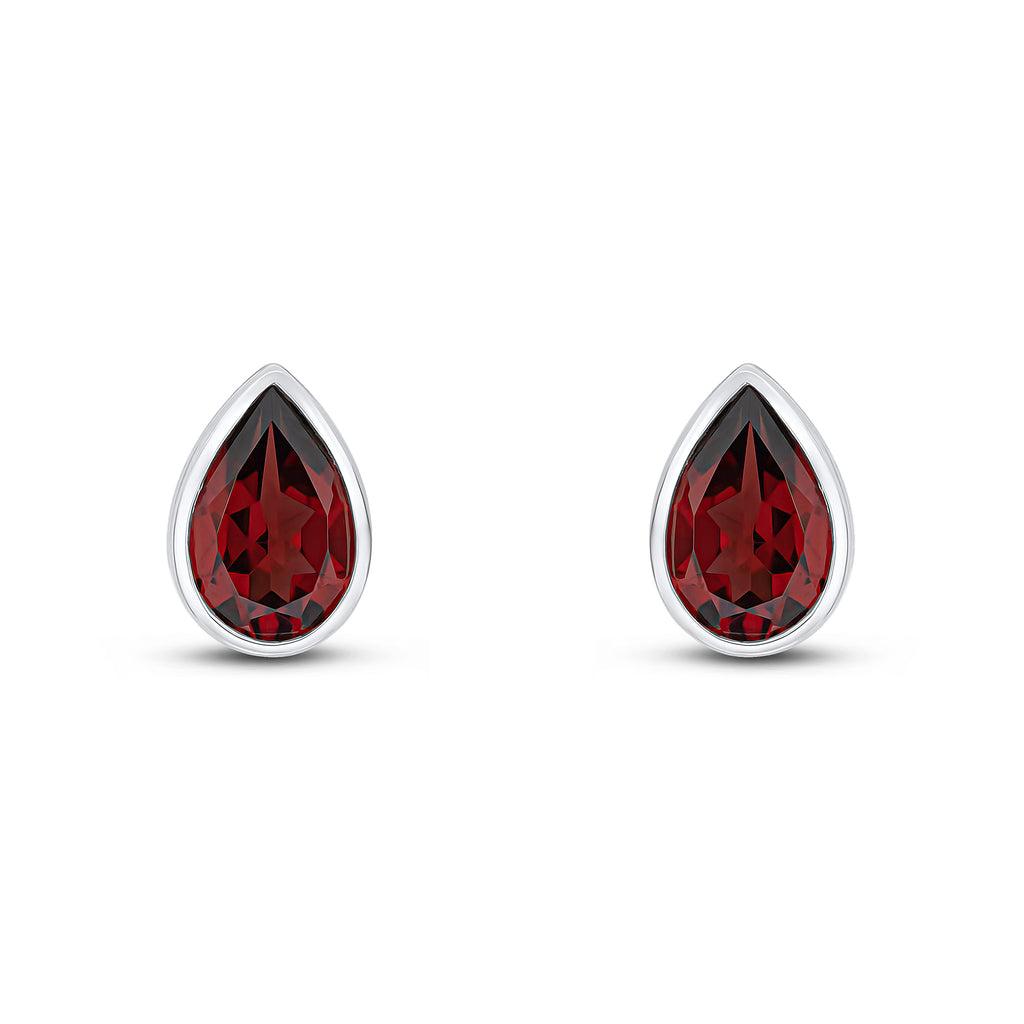 9CT White Gold Pear Shaped Garnet Rubover Stud Earrings 9x6mm