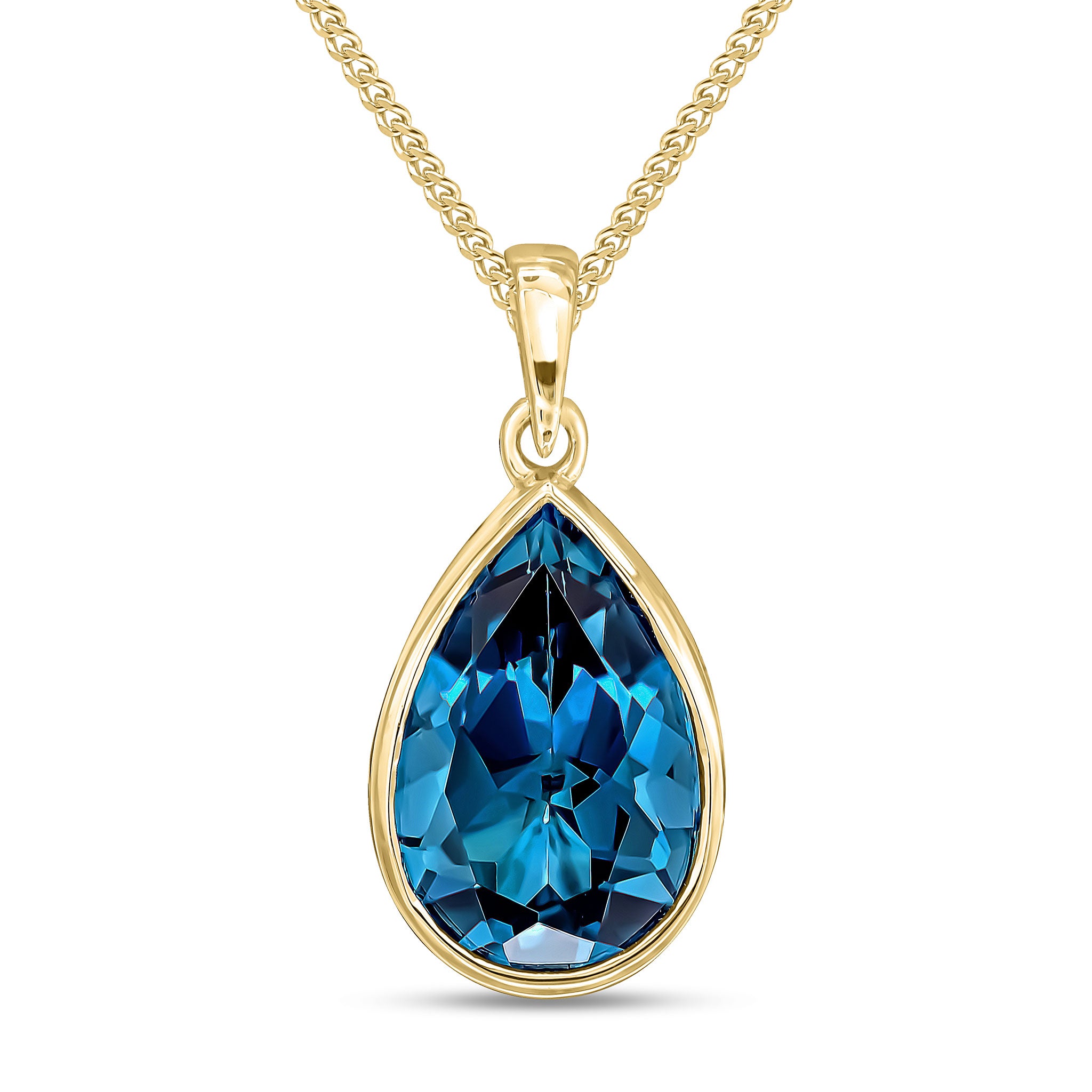 9CT Yellow Gold Pear Shaped London Blue Topaz Rubover Pendant 14x9mm