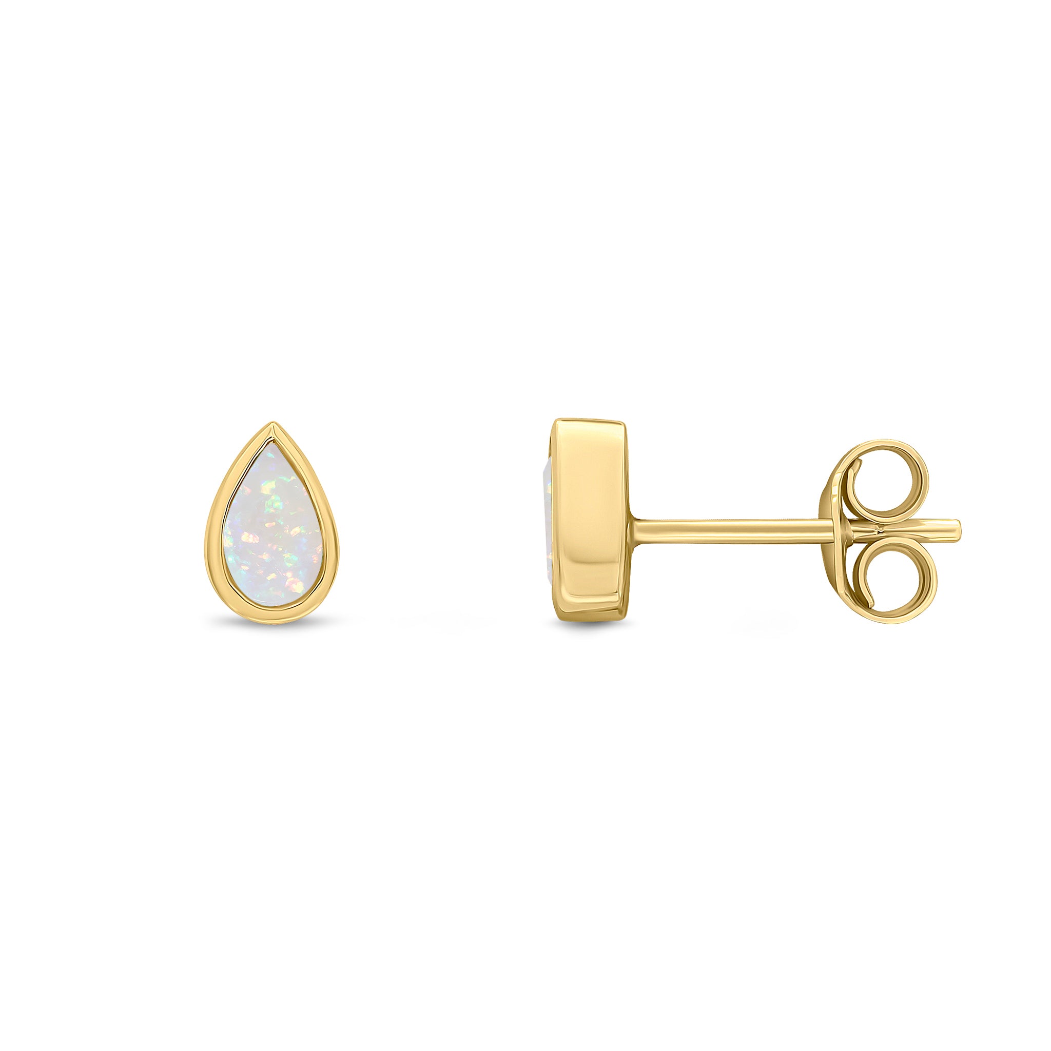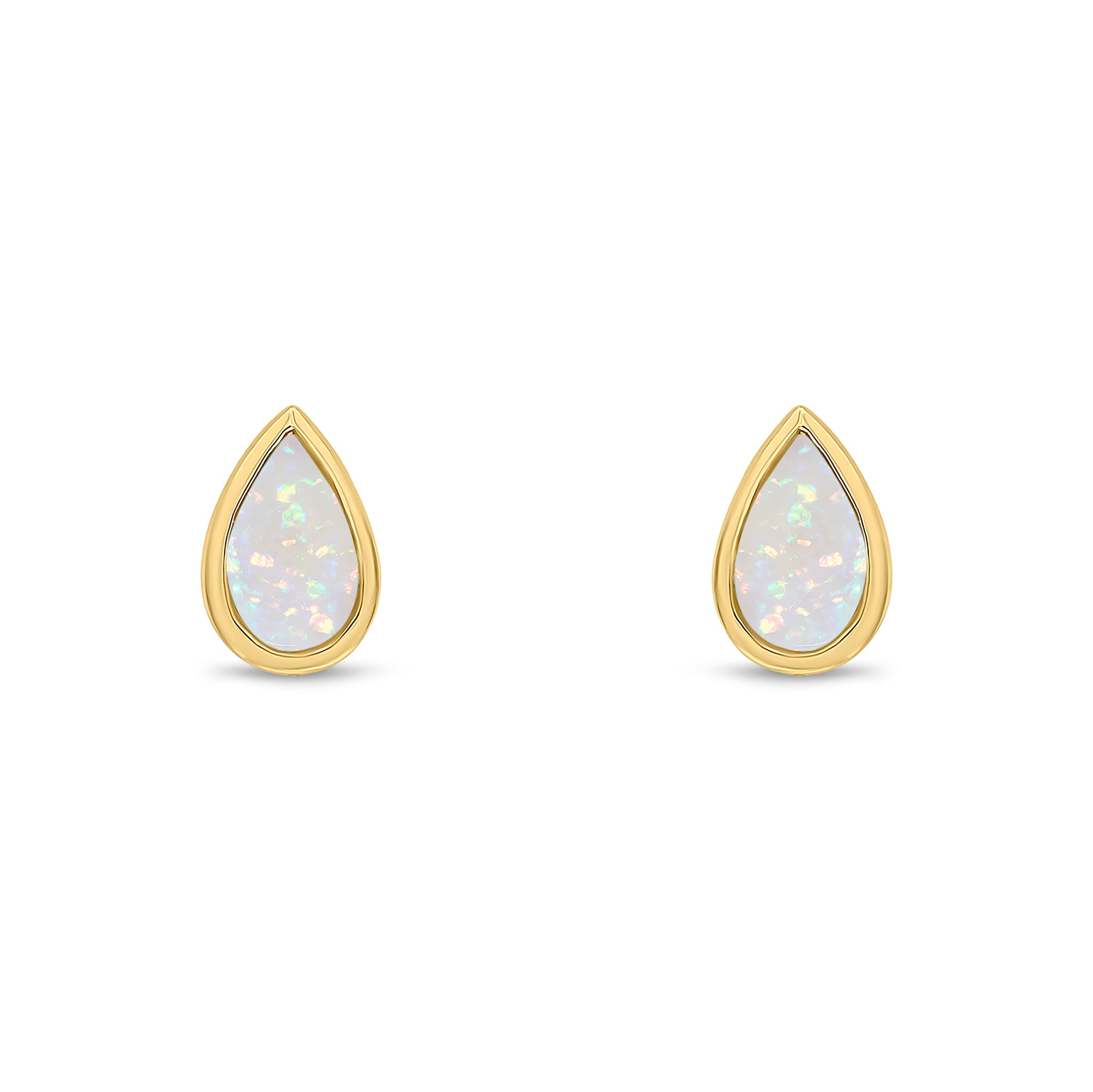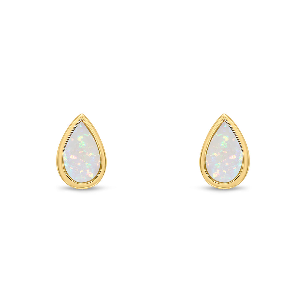 9CT Yellow Gold Pear Shaped Opal Rubover Stud Earrings 5x3mm