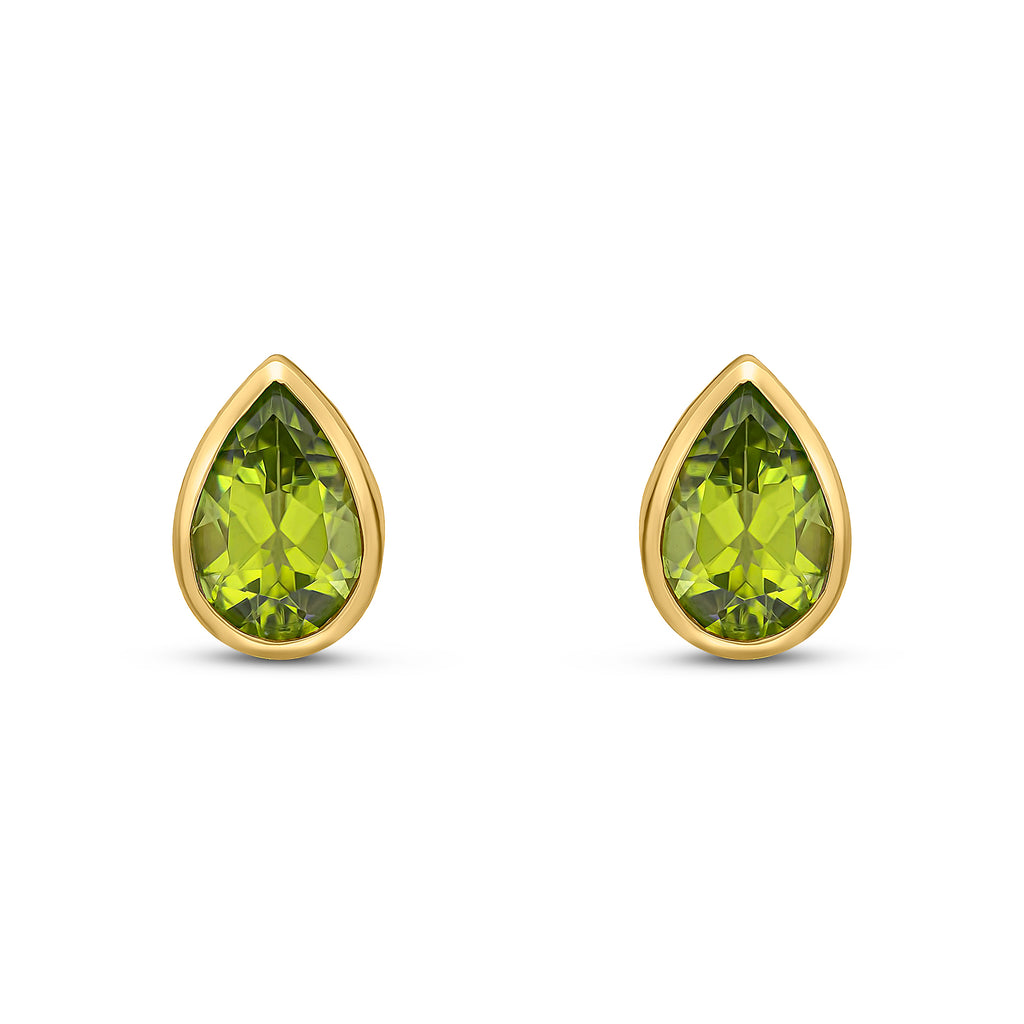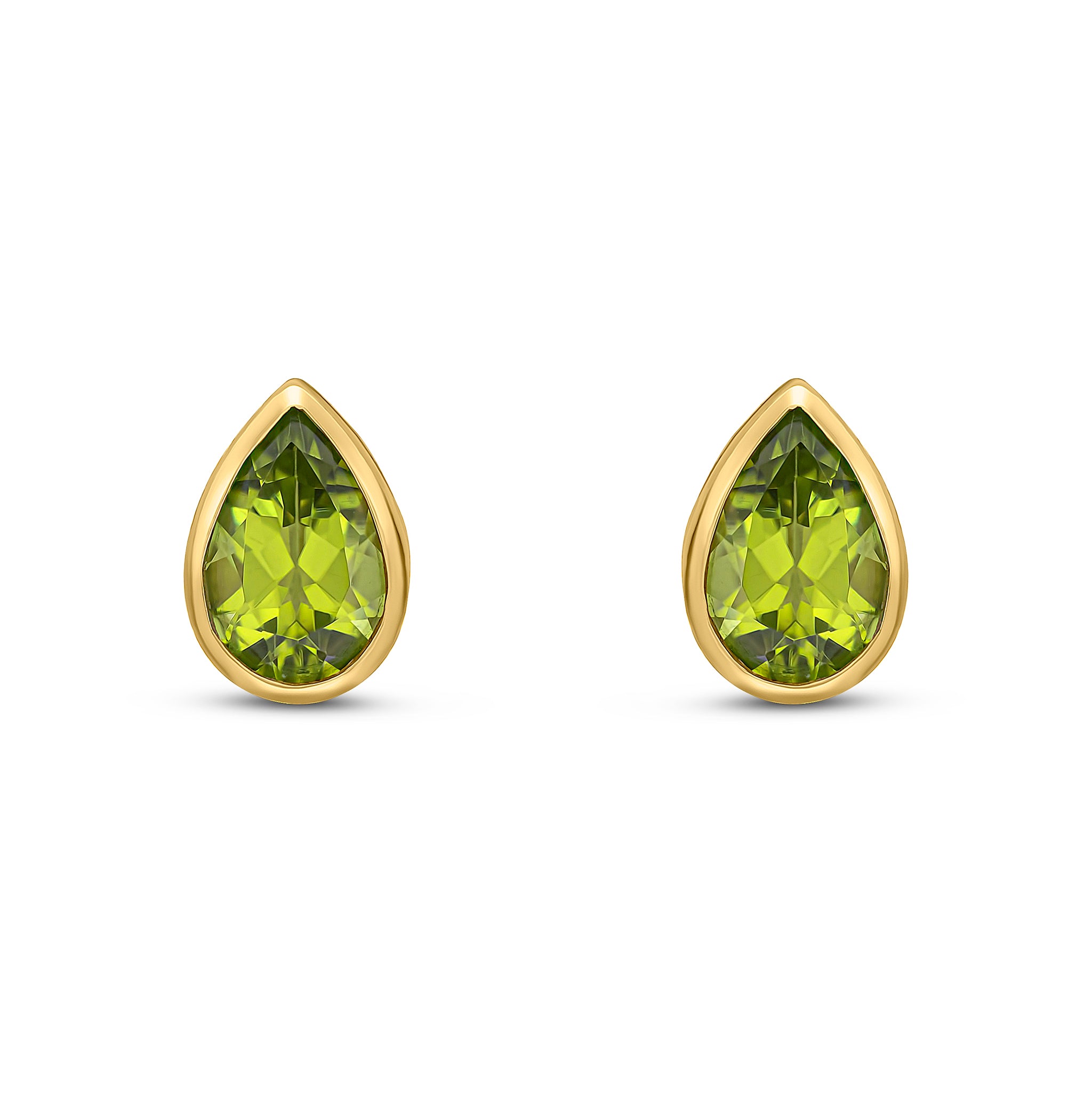 9CT Yellow Gold Pear Shaped Peridot Rubover Stud Earrings 9x6mm