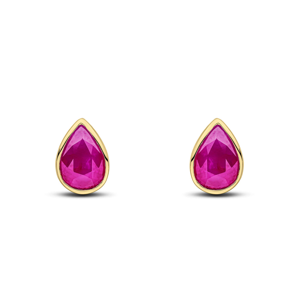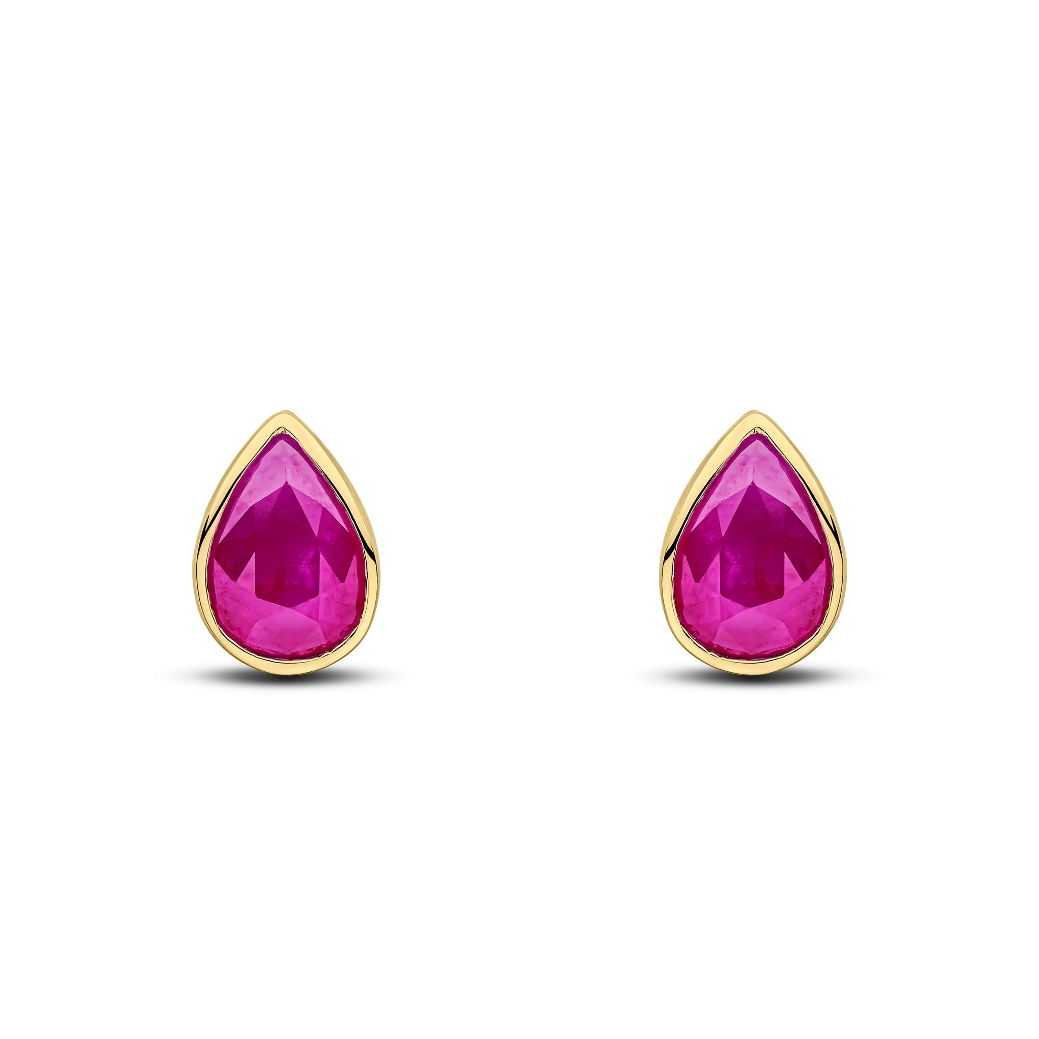 9CT Yellow Gold Pear Shaped Ruby Rubover Stud Earrings 7x5mm