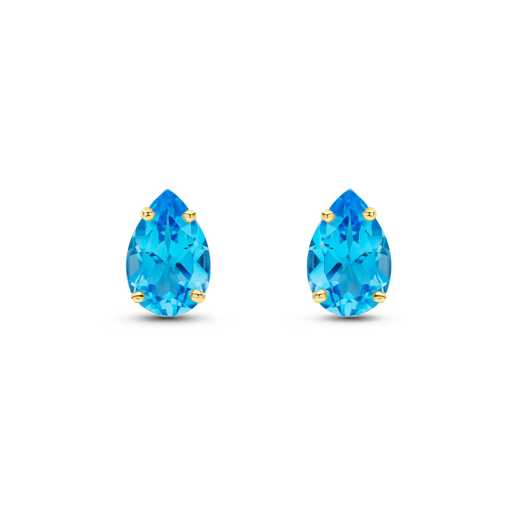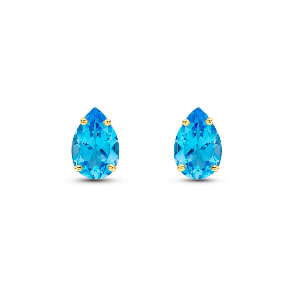 9CT Yellow Gold Pear Shaped Swiss Blue Topaz Claw Stud Earrings 9x6mm