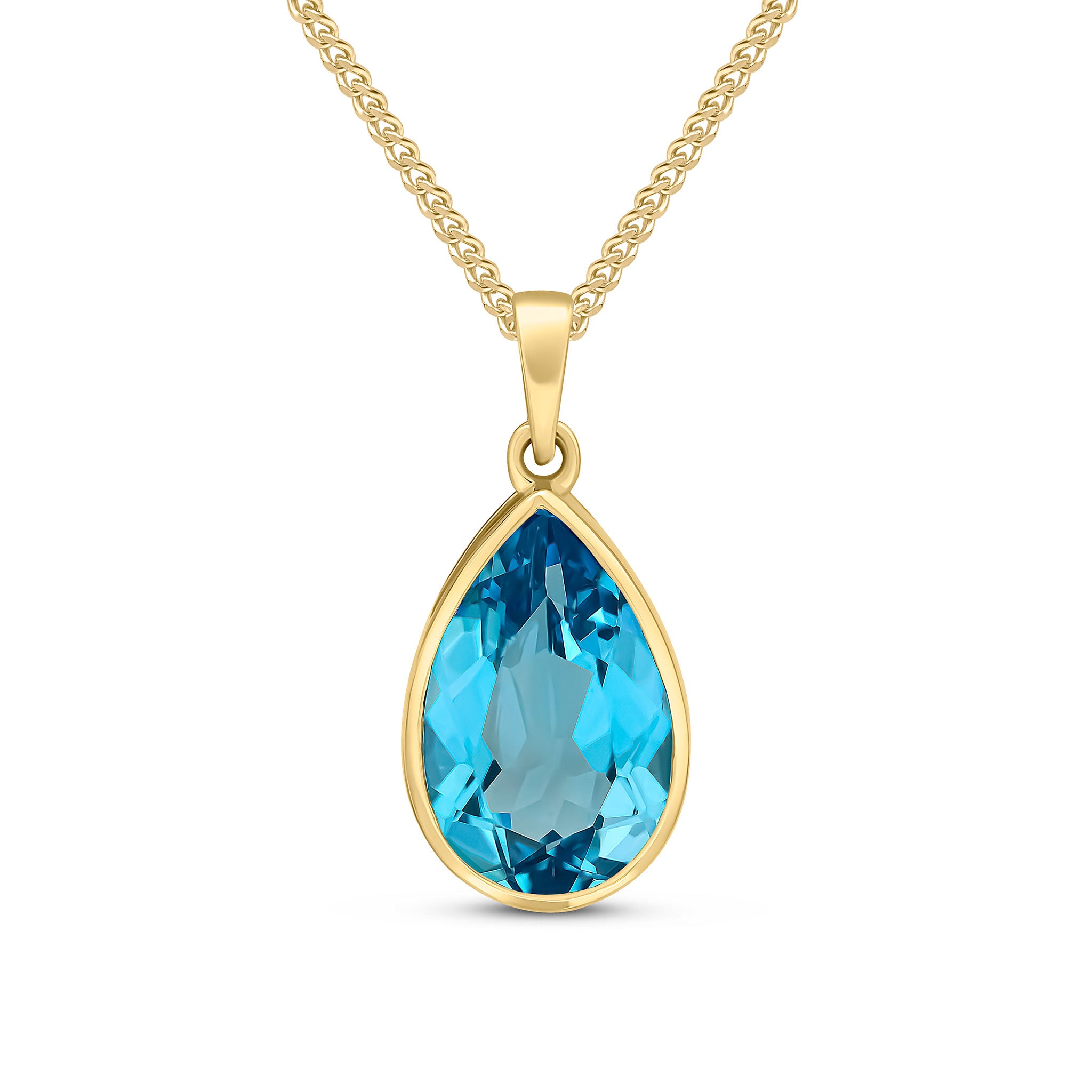 9CT Yellow Gold Pear Shaped Swiss Blue Topaz Rubover Pendant 14x9mm
