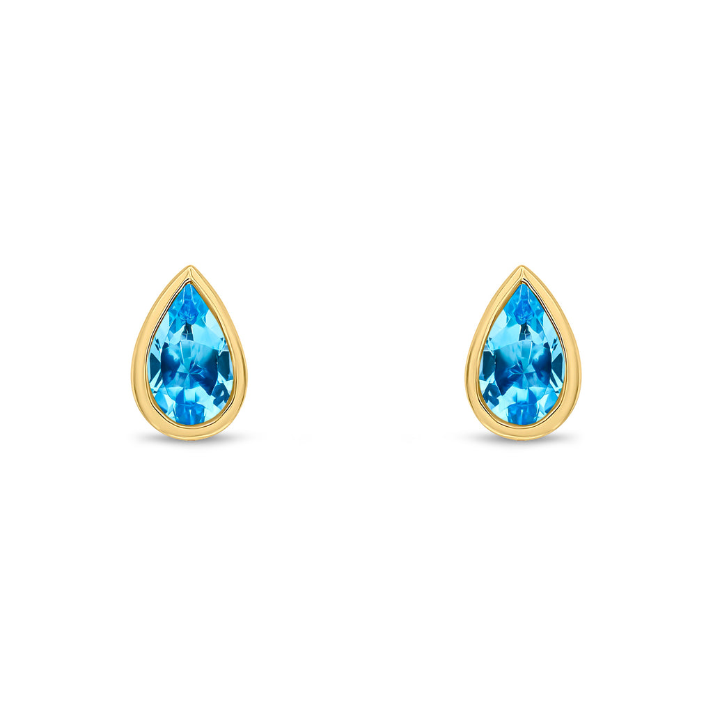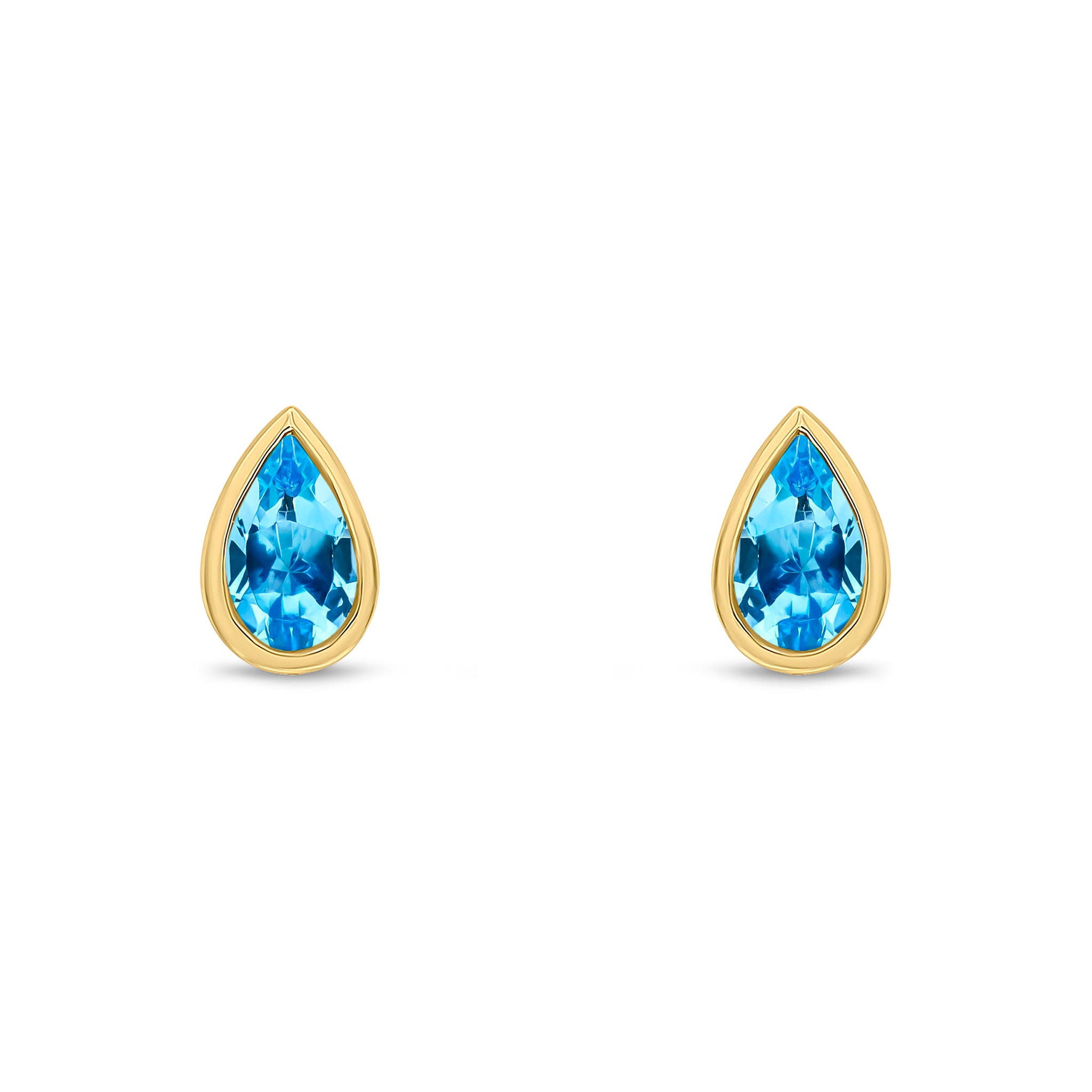 9CT Yellow Gold Pear Shaped Swiss Blue Topaz Rubover Stud Earrings 5x3mm