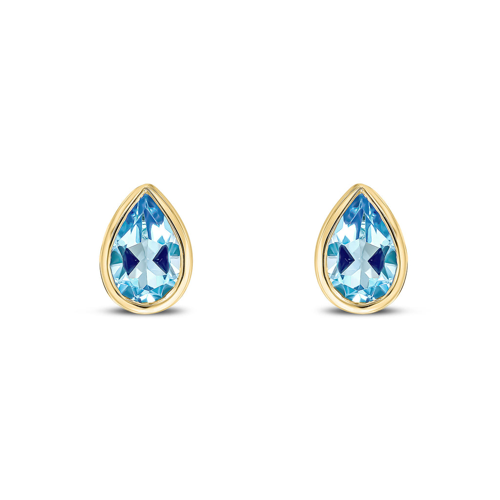 9CT Yellow Gold Pear Shaped Swiss Blue Topaz Rubover Stud Earrings 6x4mm