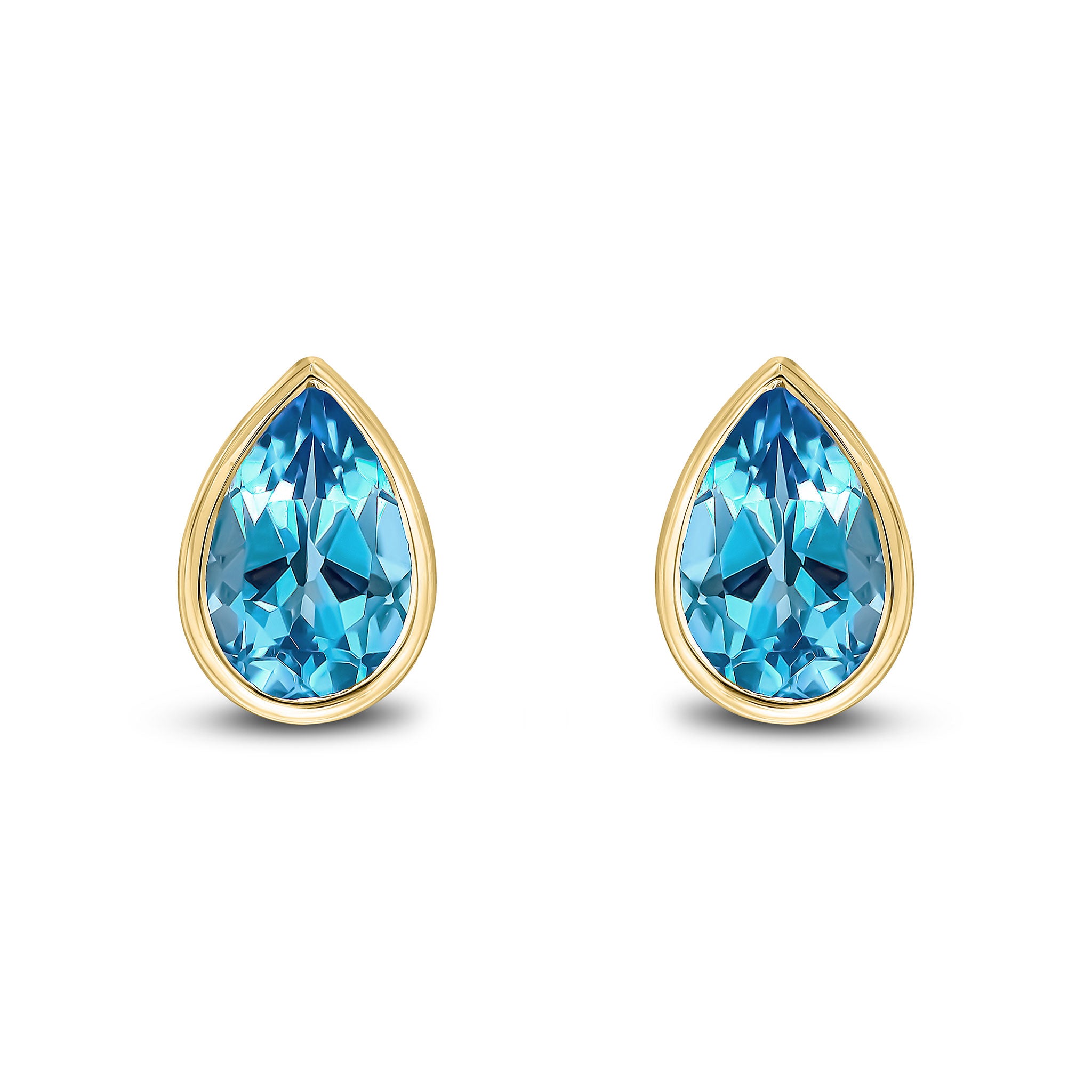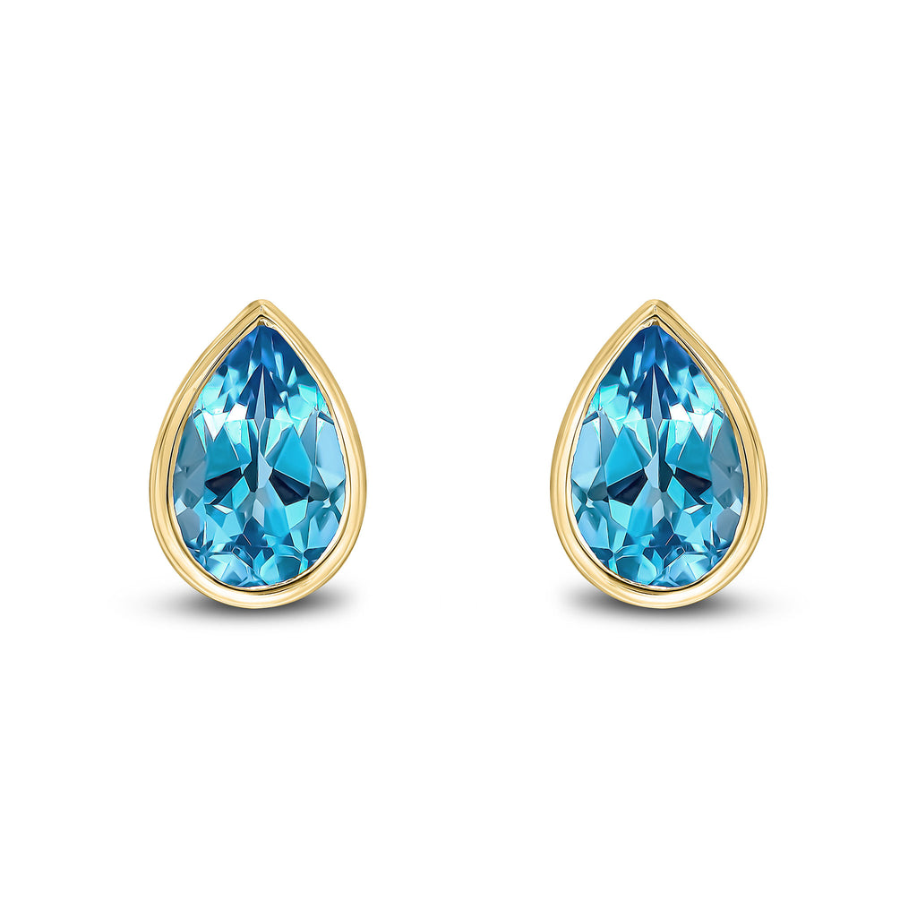 9CT Yellow Gold Pear Shaped Swiss Blue Topaz Rubover Stud Earrings 9x6mm