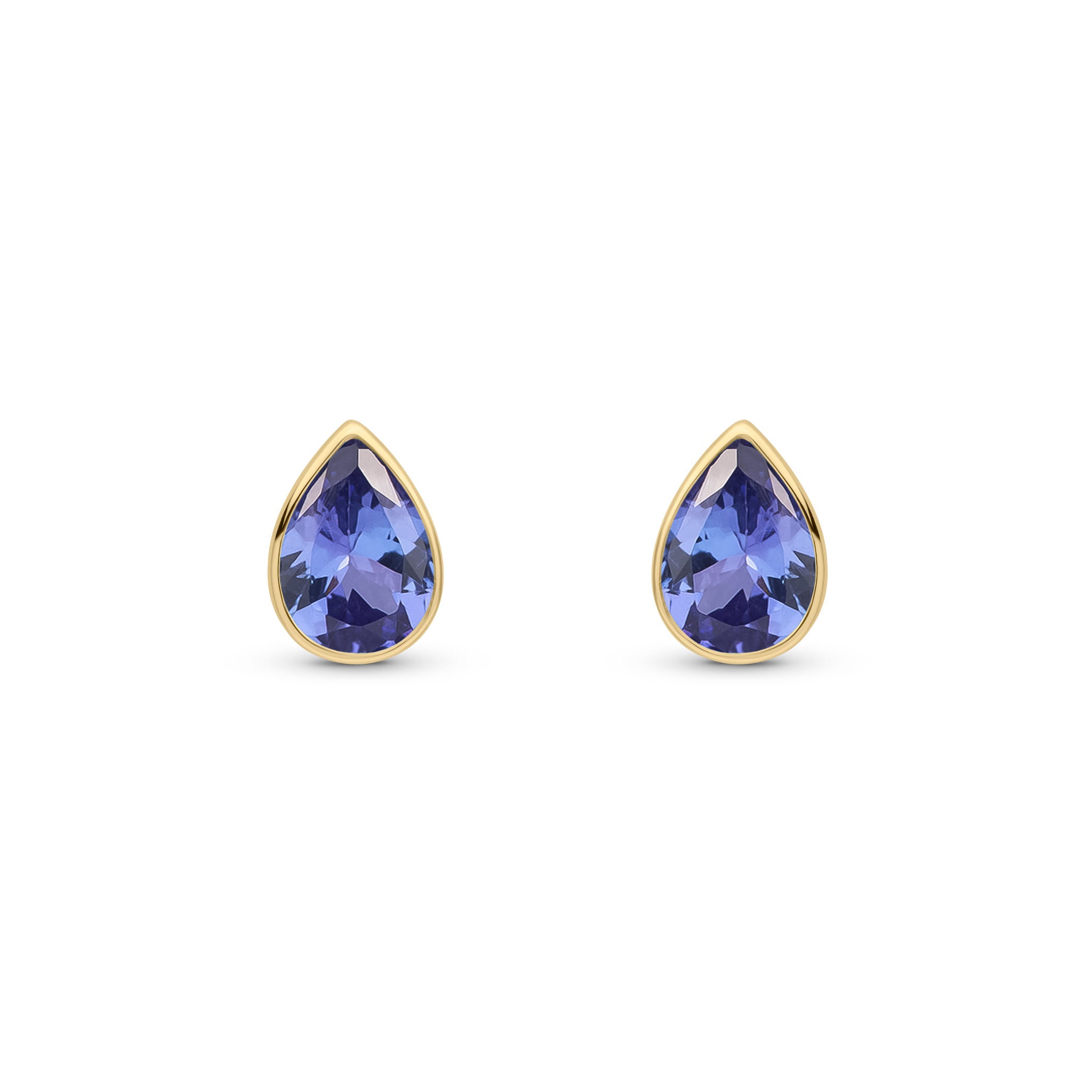 9CT Yellow Gold Pear Shaped Tanzanite Rubover Stud Earrings 7x5mm