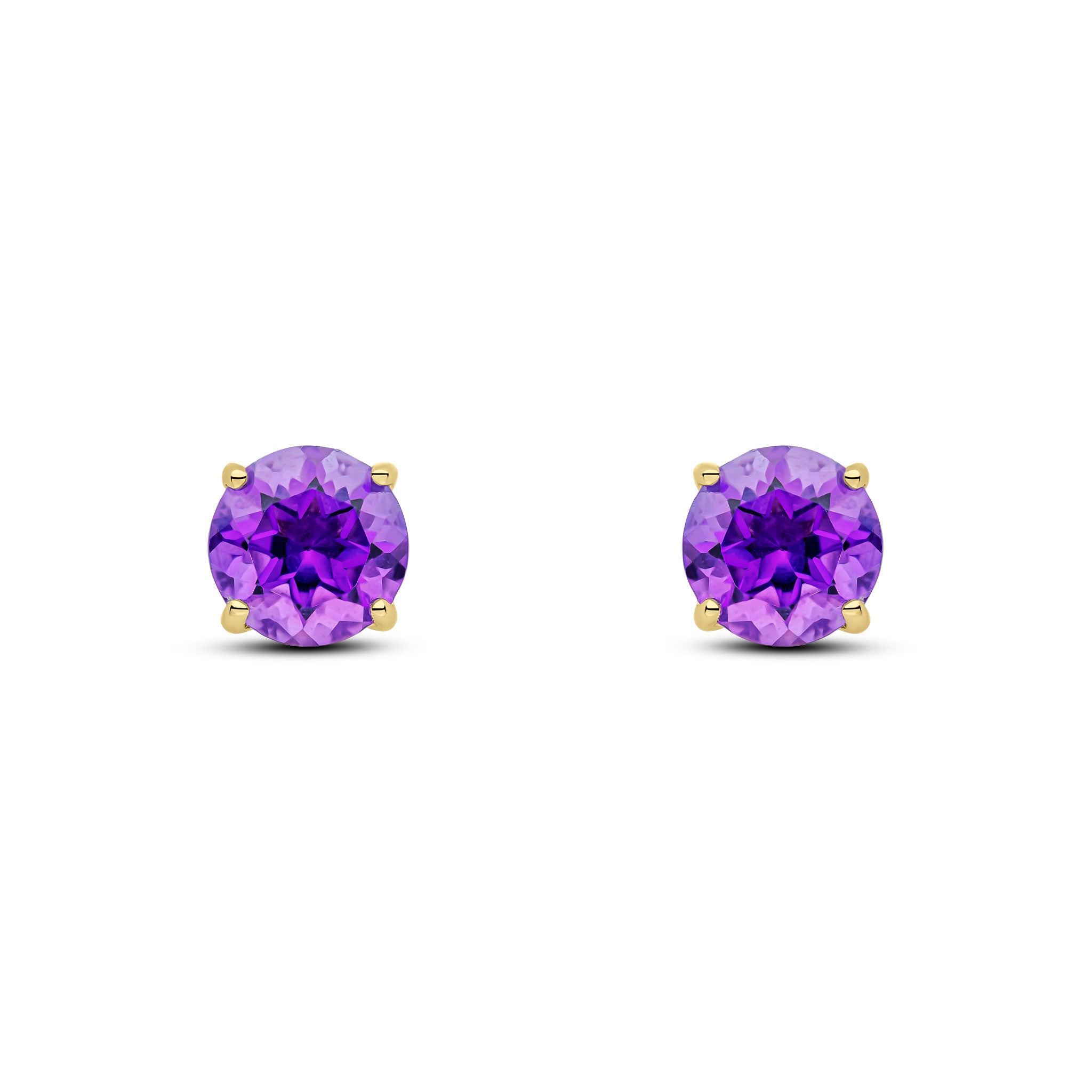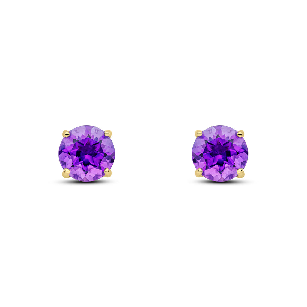 9CT Yellow Gold Round Amethyst Claw Stud Earrings 7mm