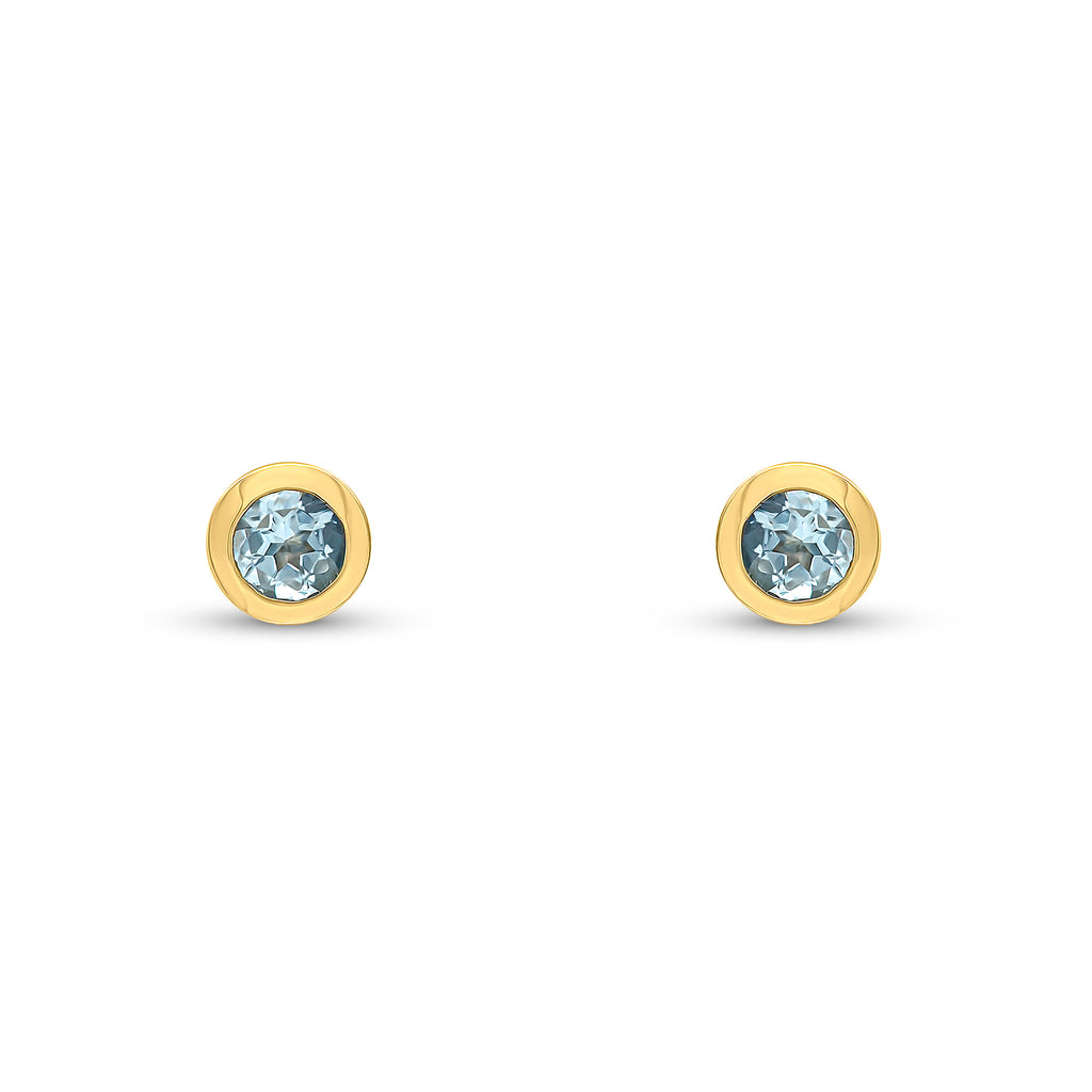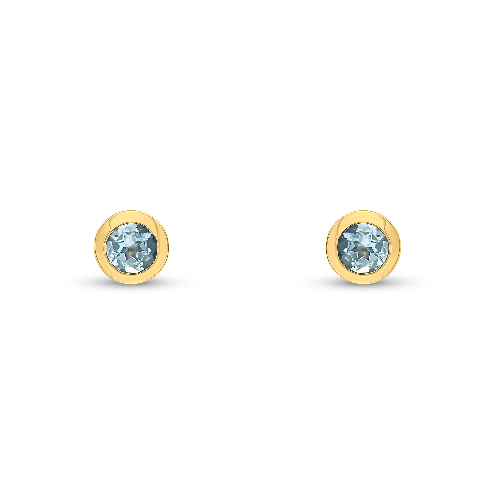9CT Yellow Gold Round Aquamarine Rubover Stud Earrings 3mm