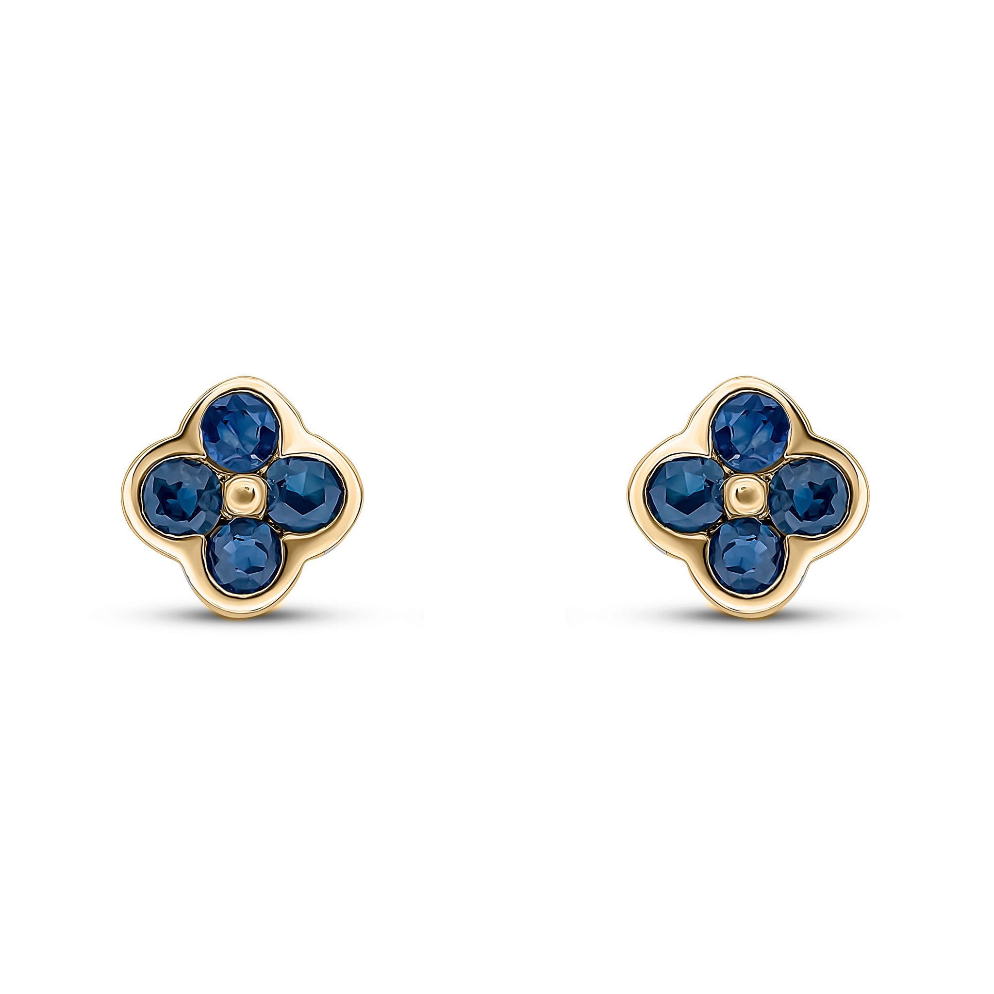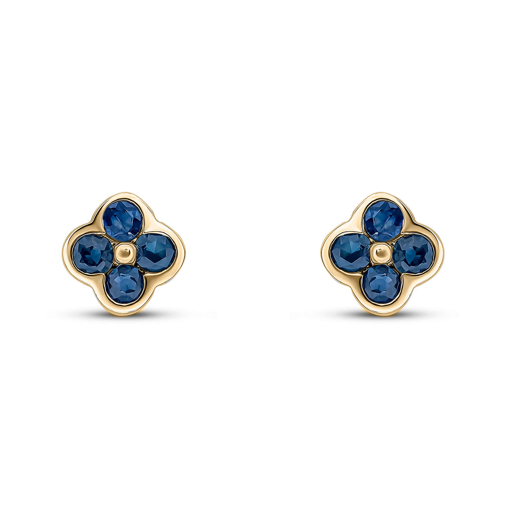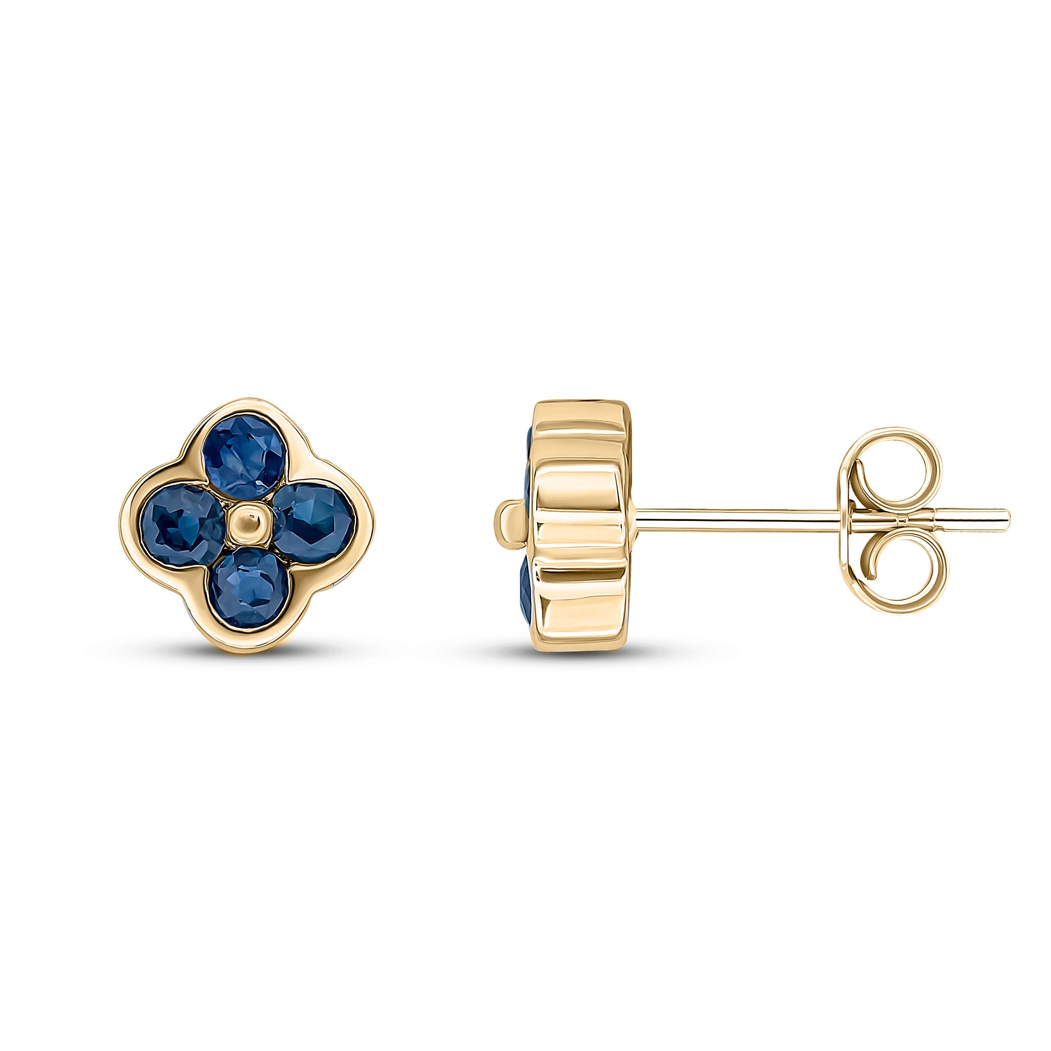 9CT Yellow Gold Round Blue Sapphire Four Stone Rubover Stud Earrings