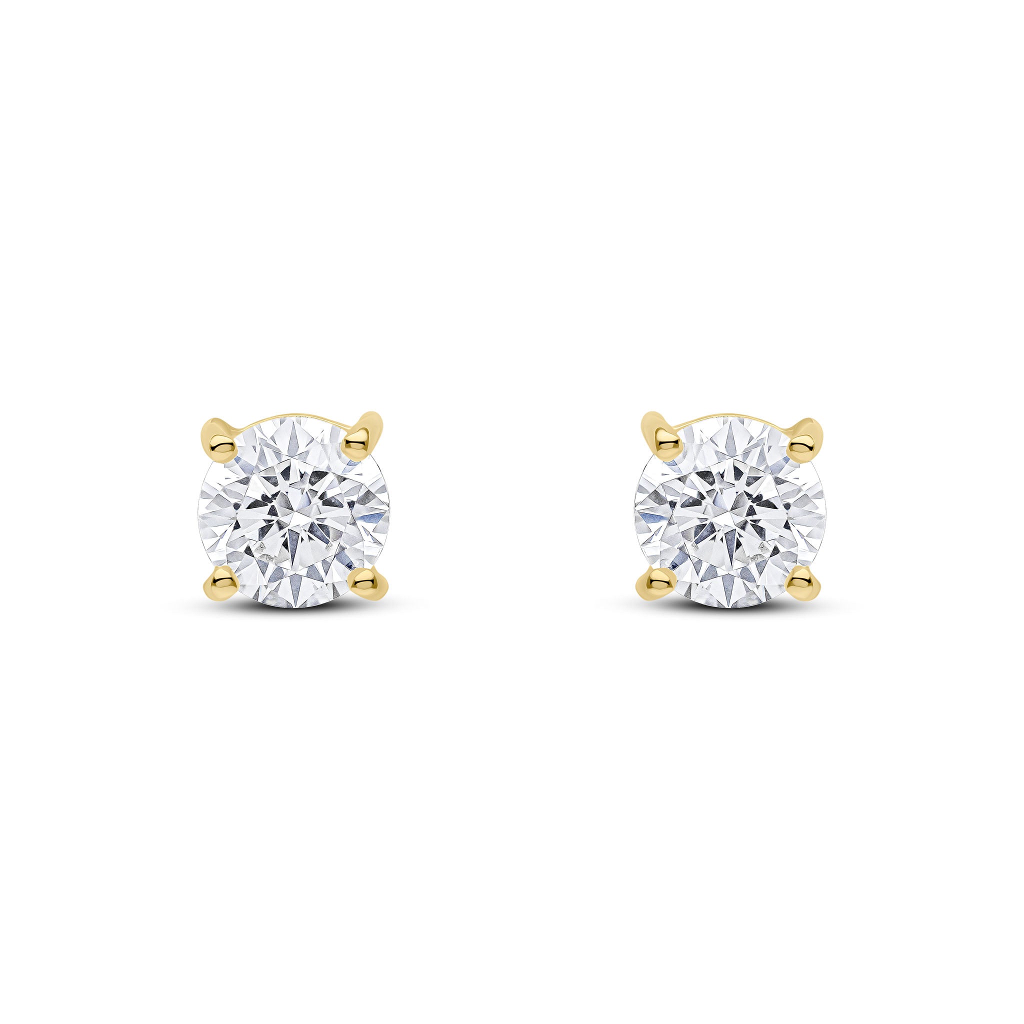 9CT Yellow Gold Round Cubic Zirconia CZ Claw Stud Earrings 6mm