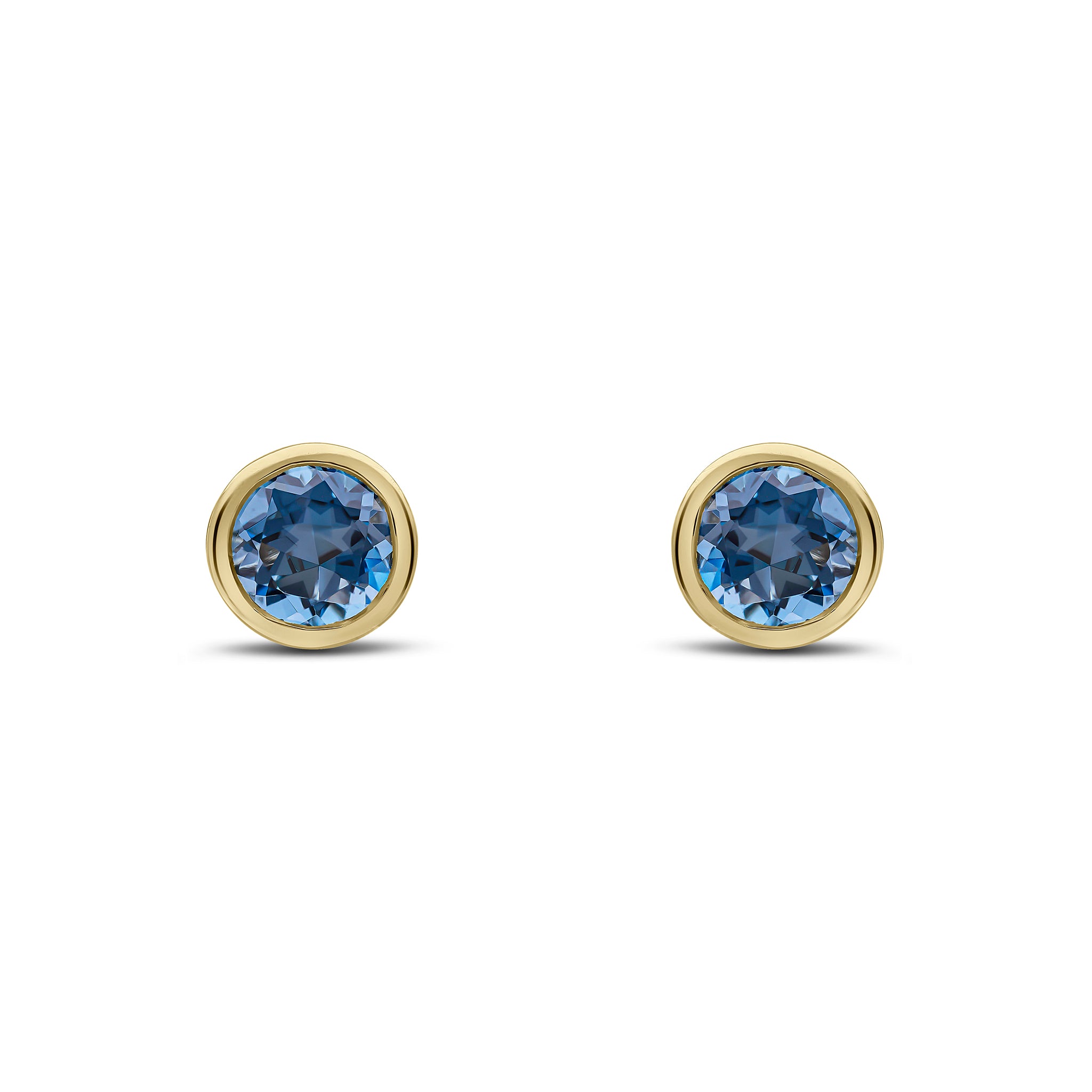 9CT Yellow Gold Round London Blue Topaz Rubover Stud Earrings 6mm