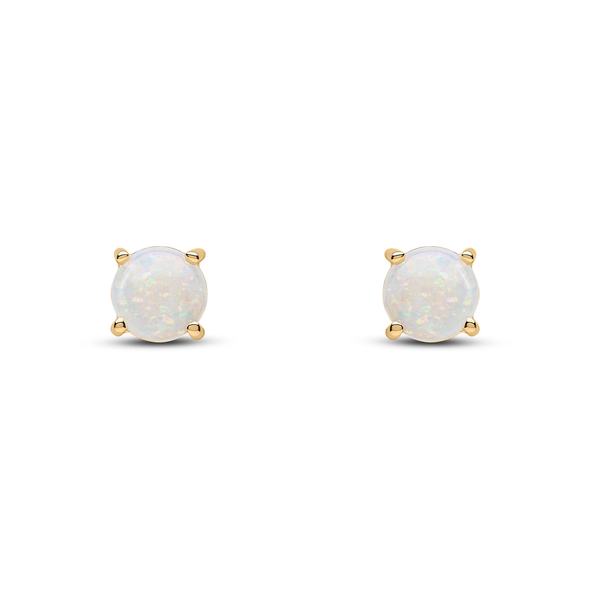 9CT Yellow Gold Round Opal Claw Stud Earrings 6mm