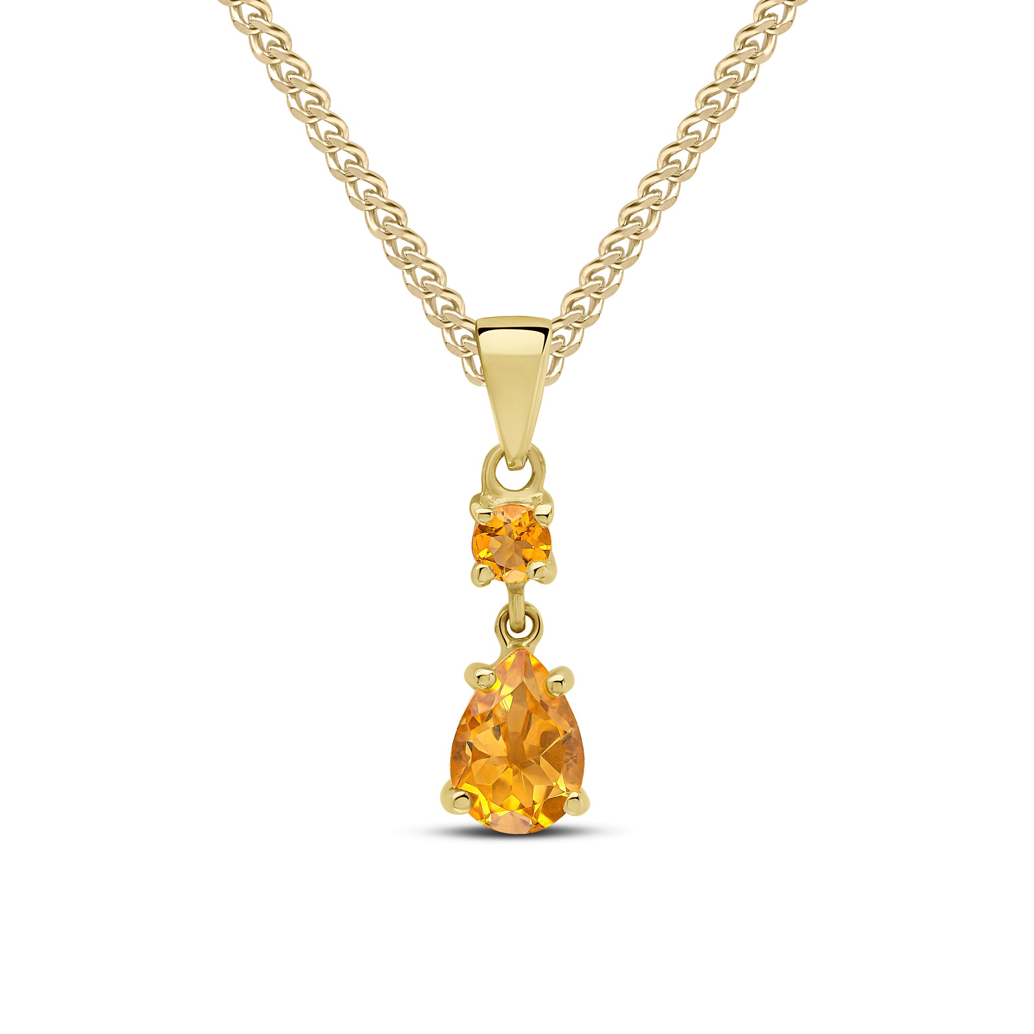 9CT Yellow Gold Round & Pear Shaped Citrine Two Stone Pendant
