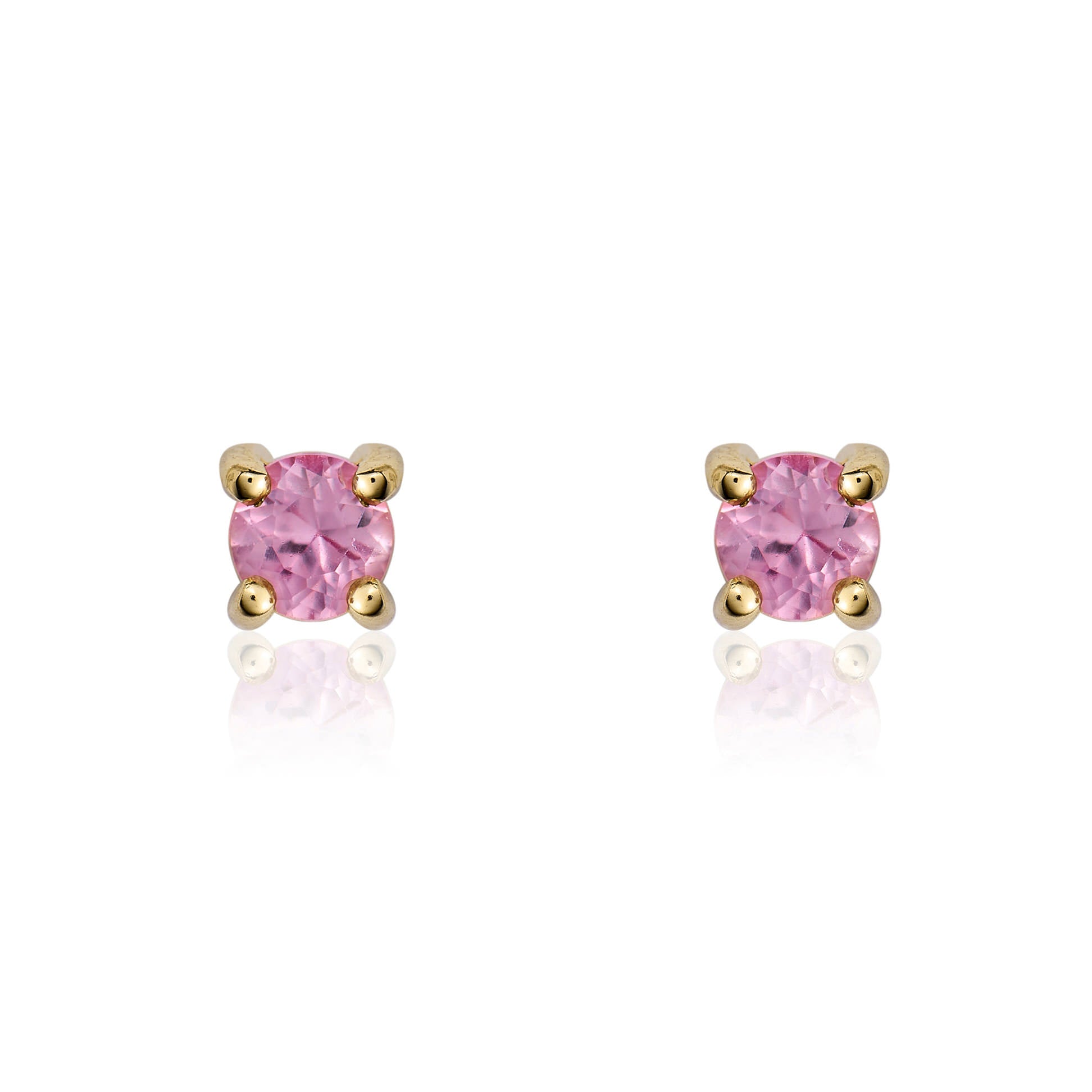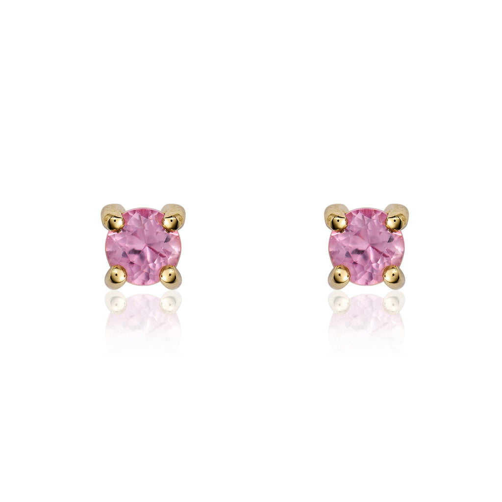 9CT Yellow Gold Round Pink Sapphire Claw Stud Earrings 3mm