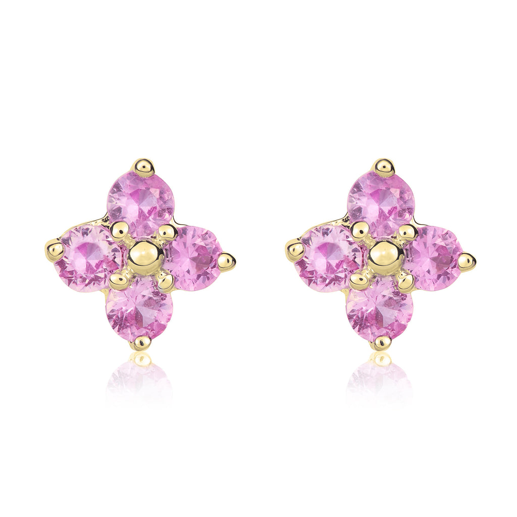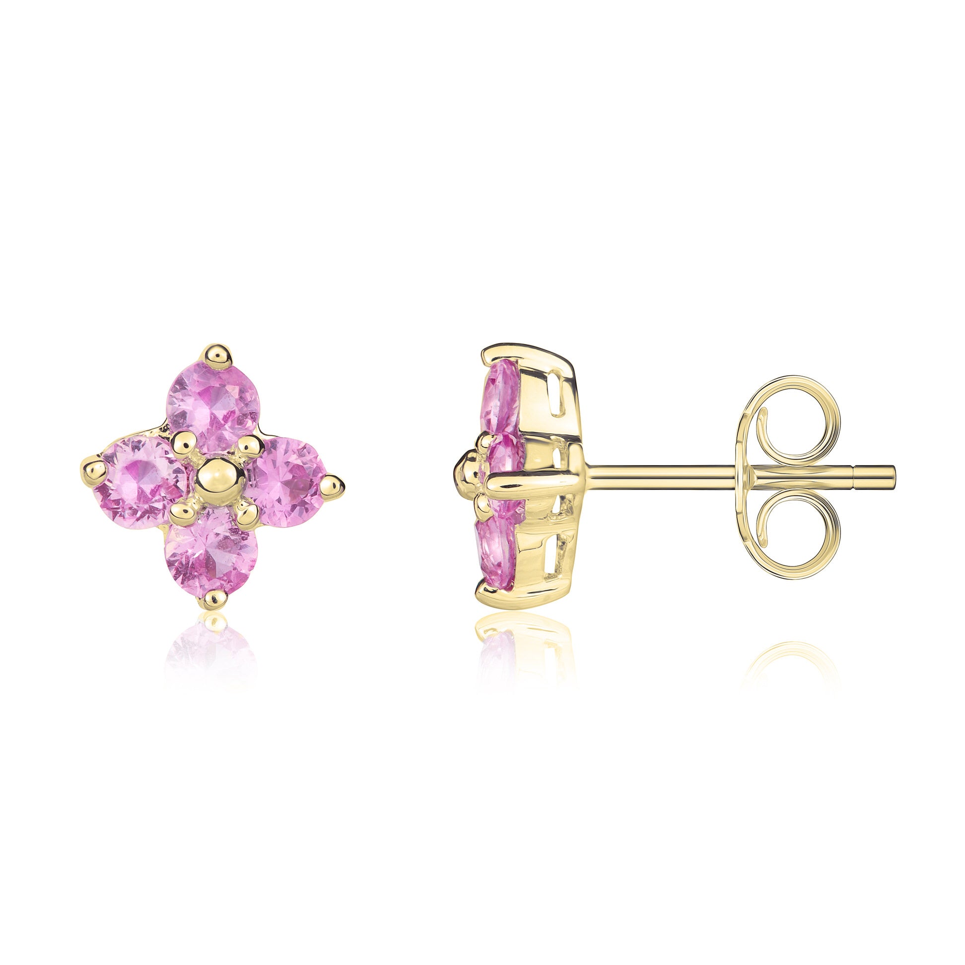 9CT Yellow Gold Round Pink Sapphire Four Stone Cluster Stud Earrings