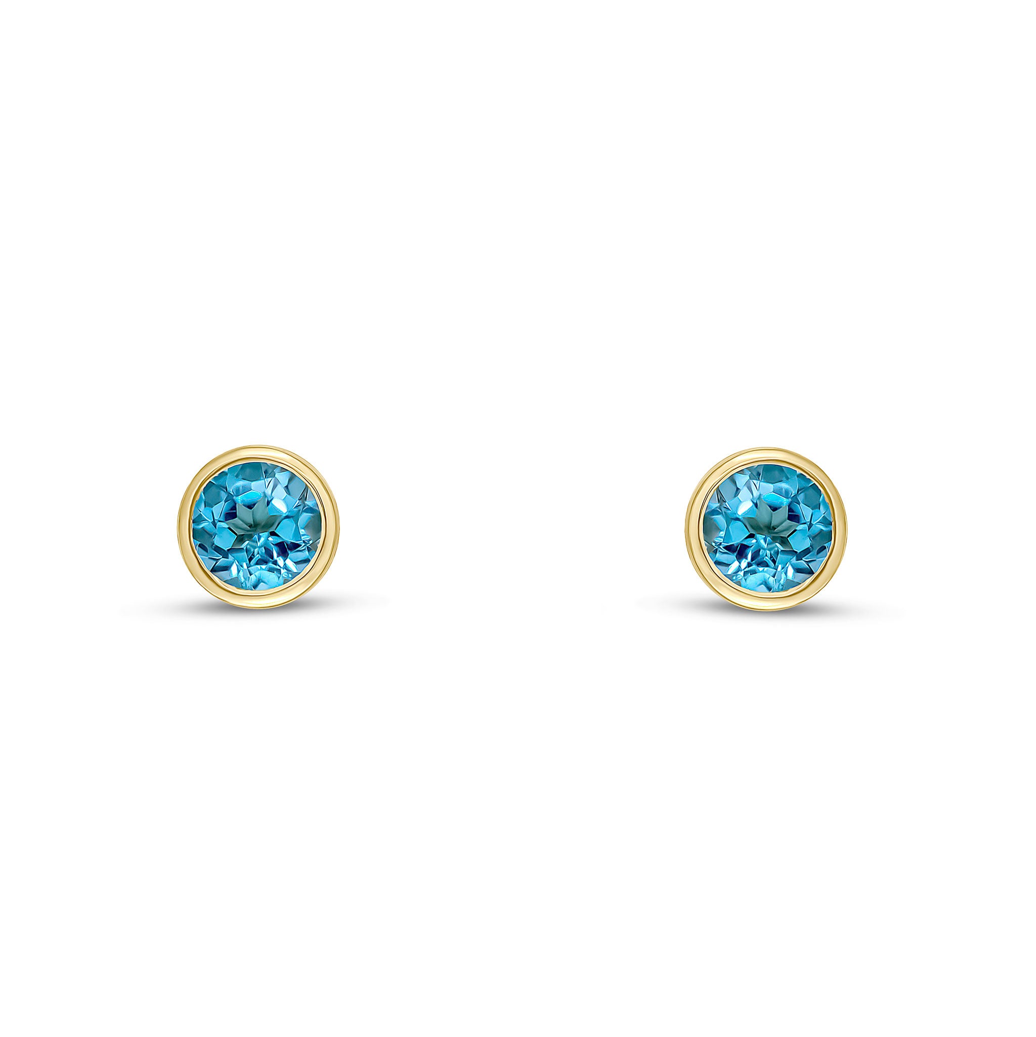 9CT Yellow Gold Round Swiss Blue Topaz Rubover Stud Earrings 4mm
