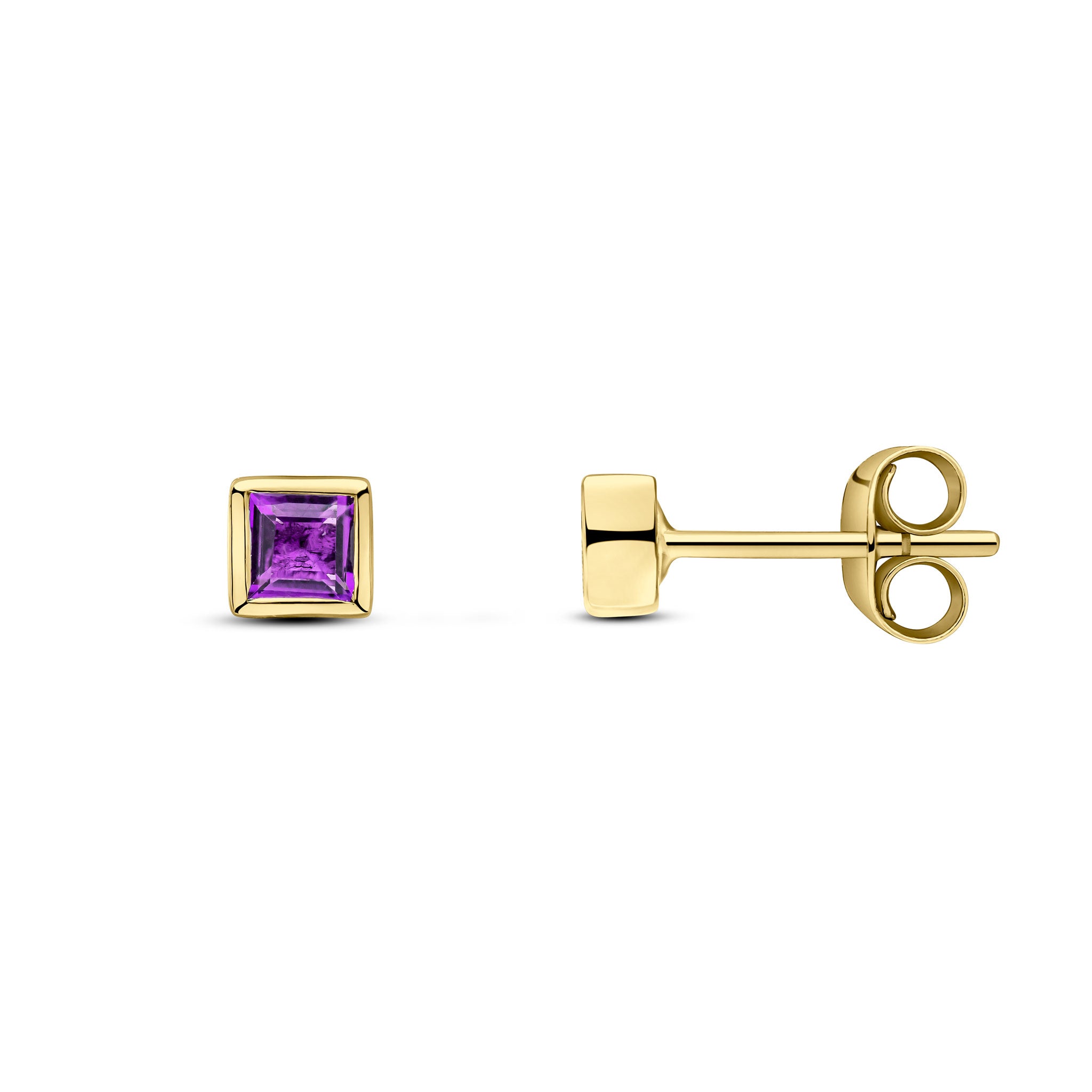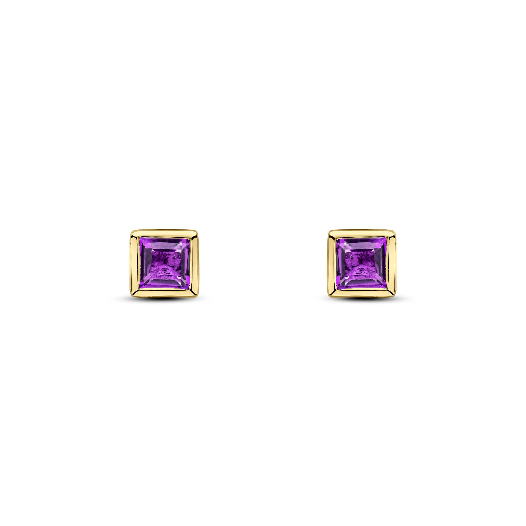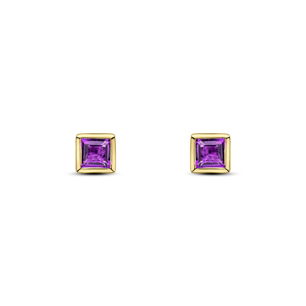 9CT Yellow Gold Square Amethyst Rubover Stud Earrings 3mm