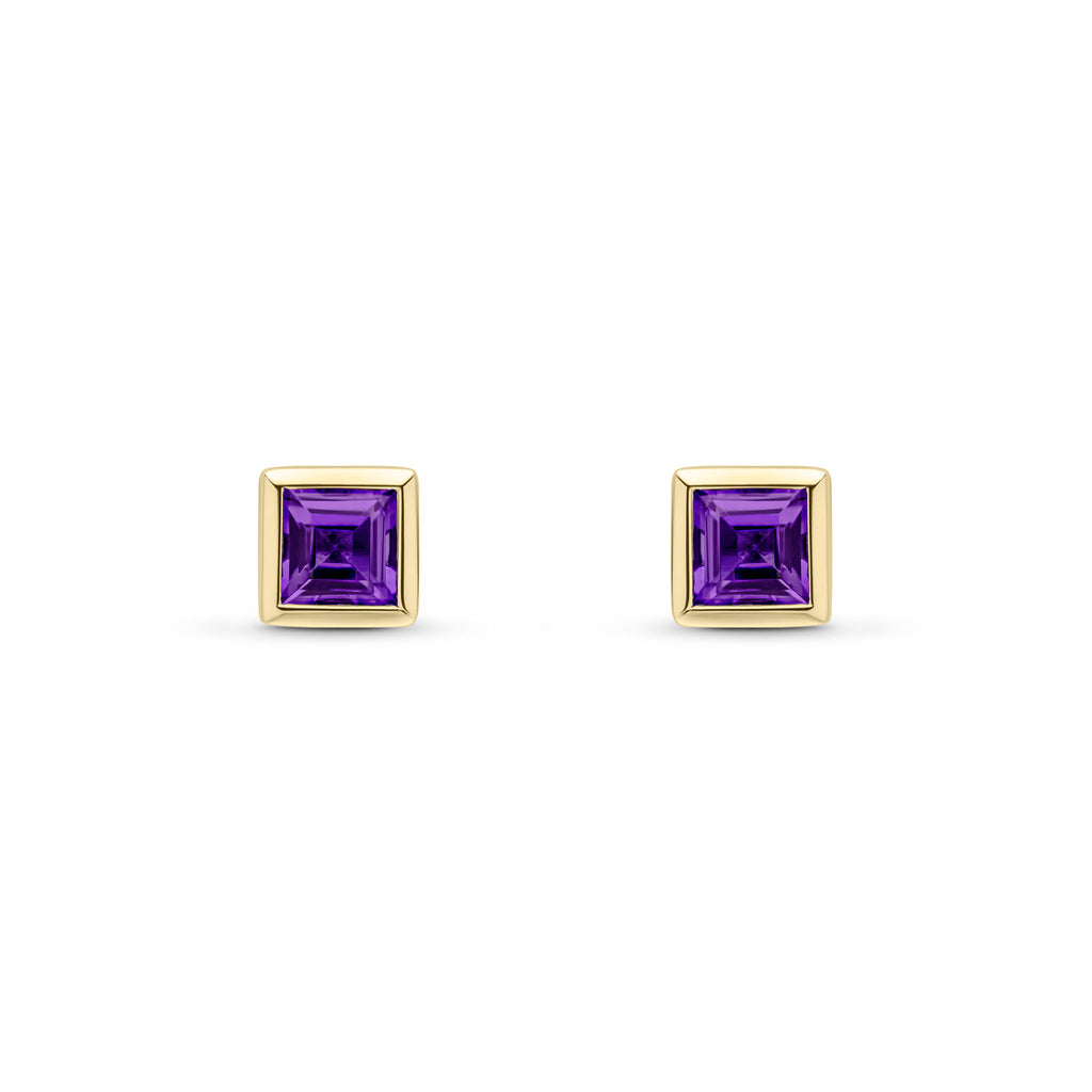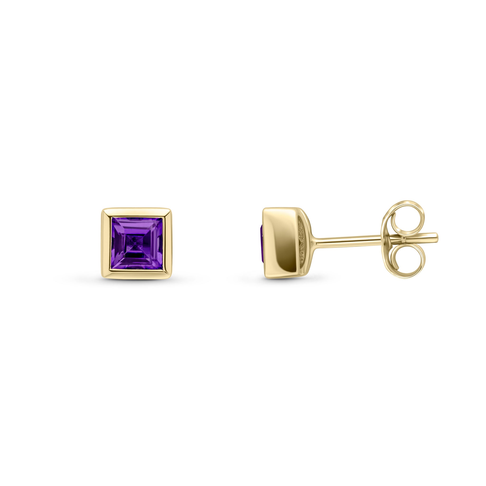 9CT Yellow Gold Square Amethyst Rubover Stud Earrings 4mm