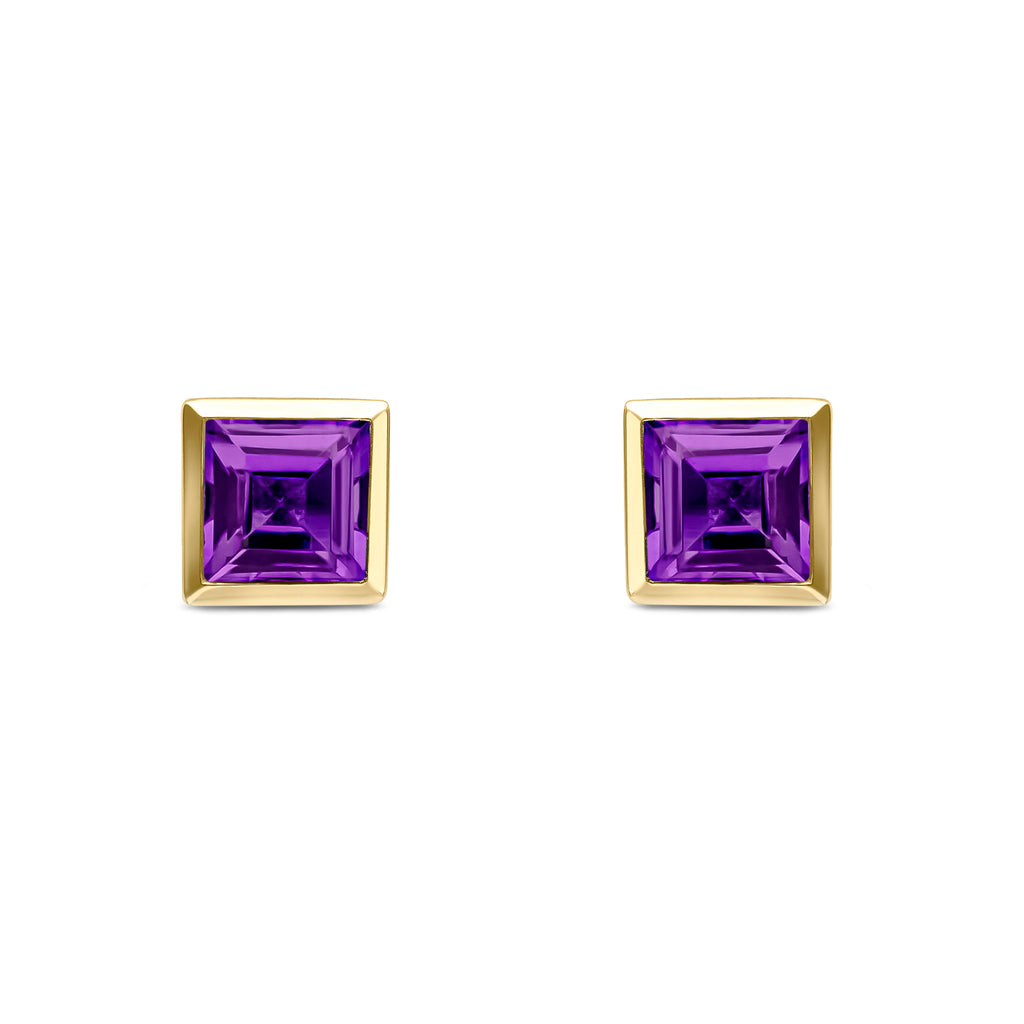 9CT Yellow Gold Square Amethyst Rubover Stud Earrings 5mm