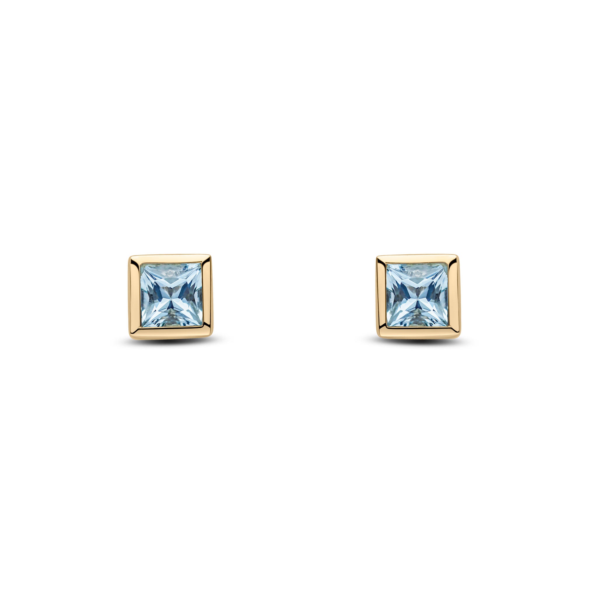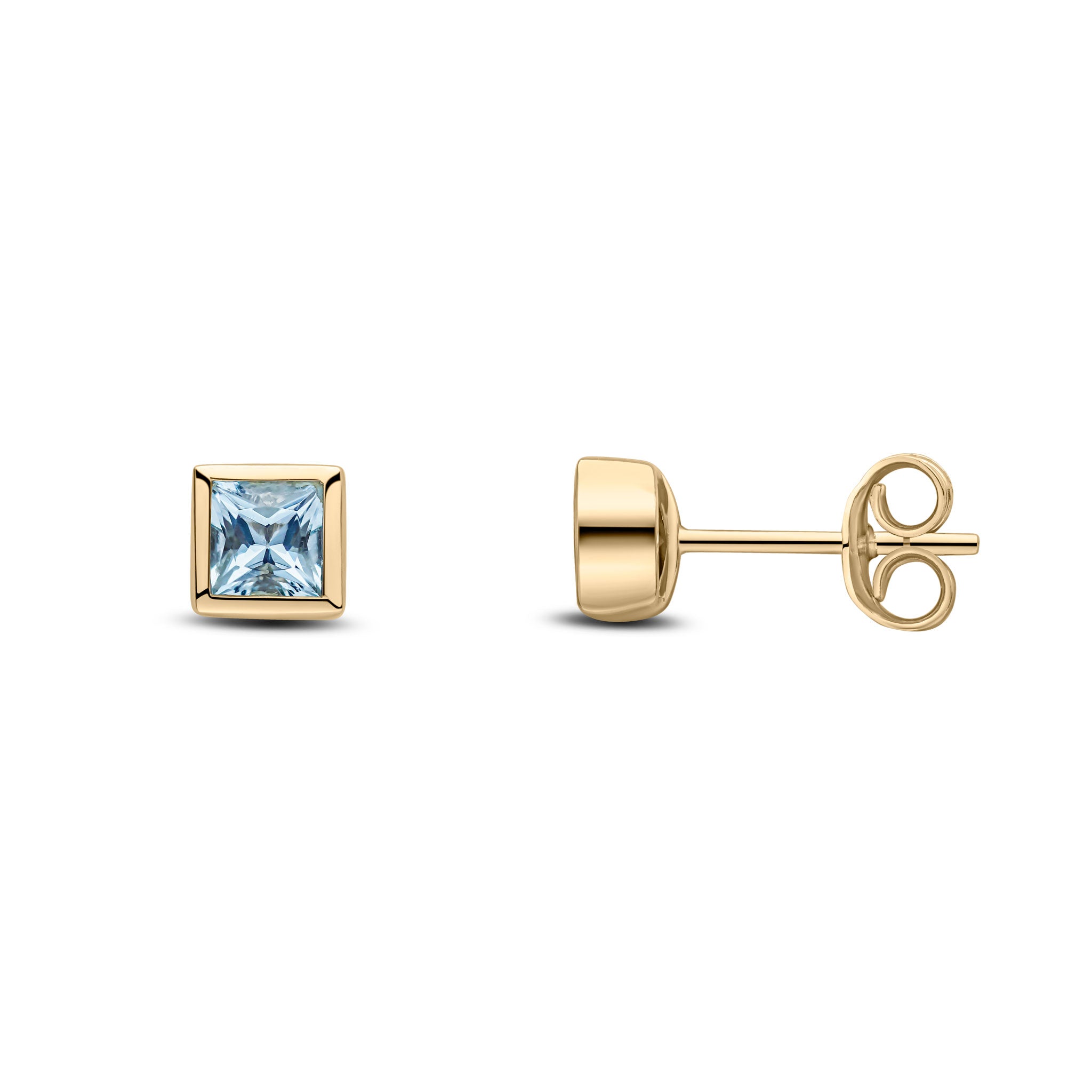 9CT Yellow Gold Square Aquamarine Rubover Stud Earrings 4mm