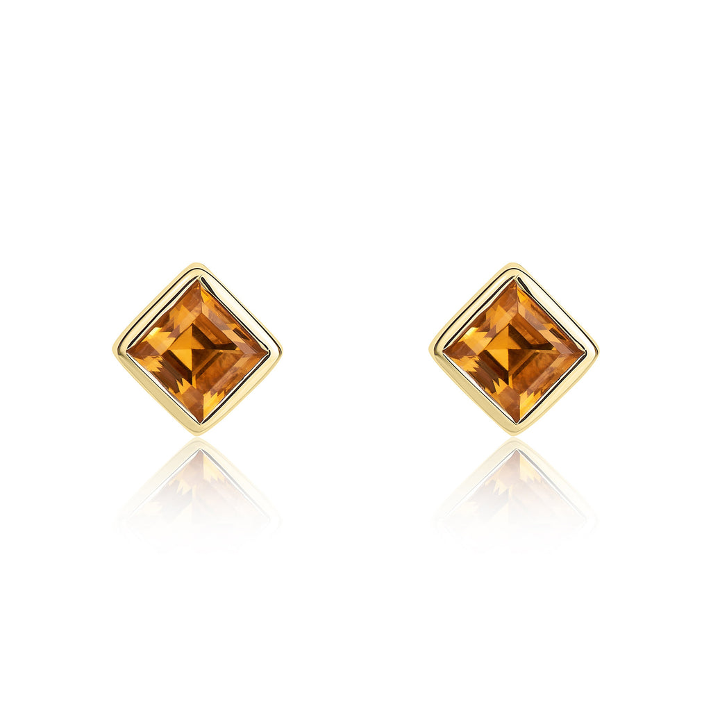 9CT Yellow Gold Square Citrine Stud Rubover Earrings 3mm