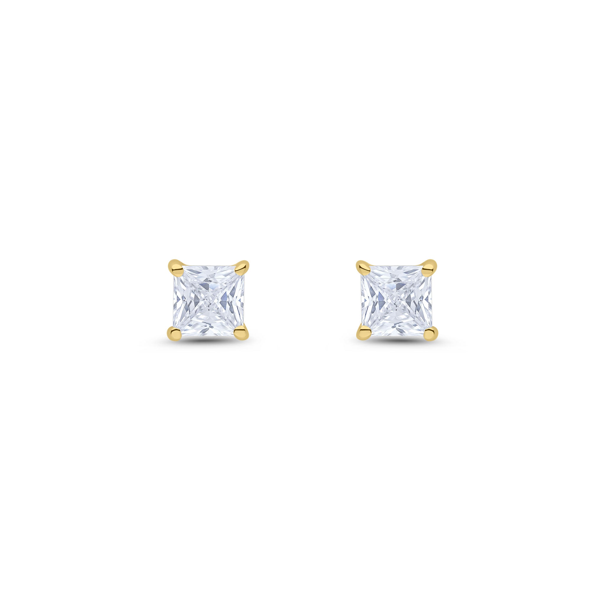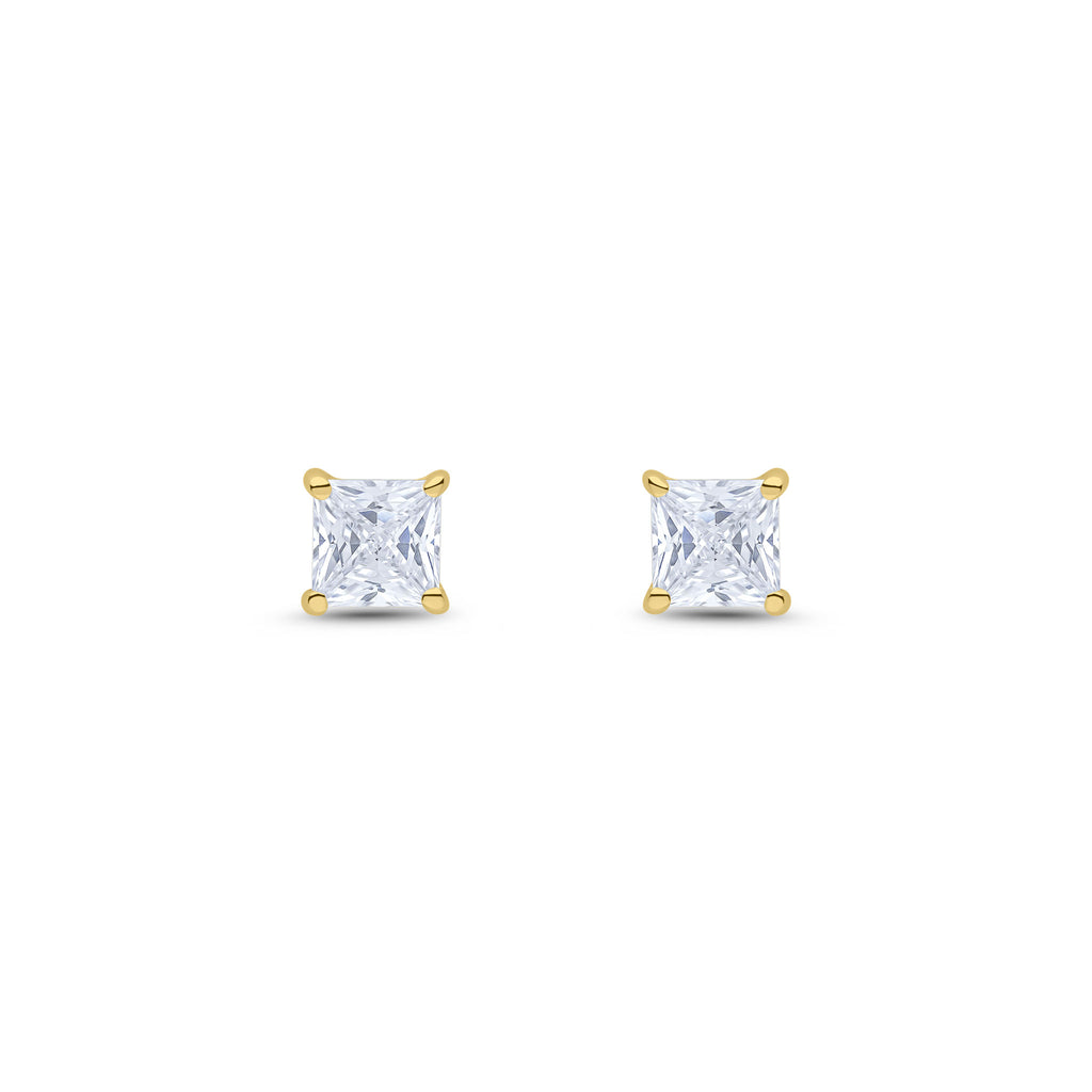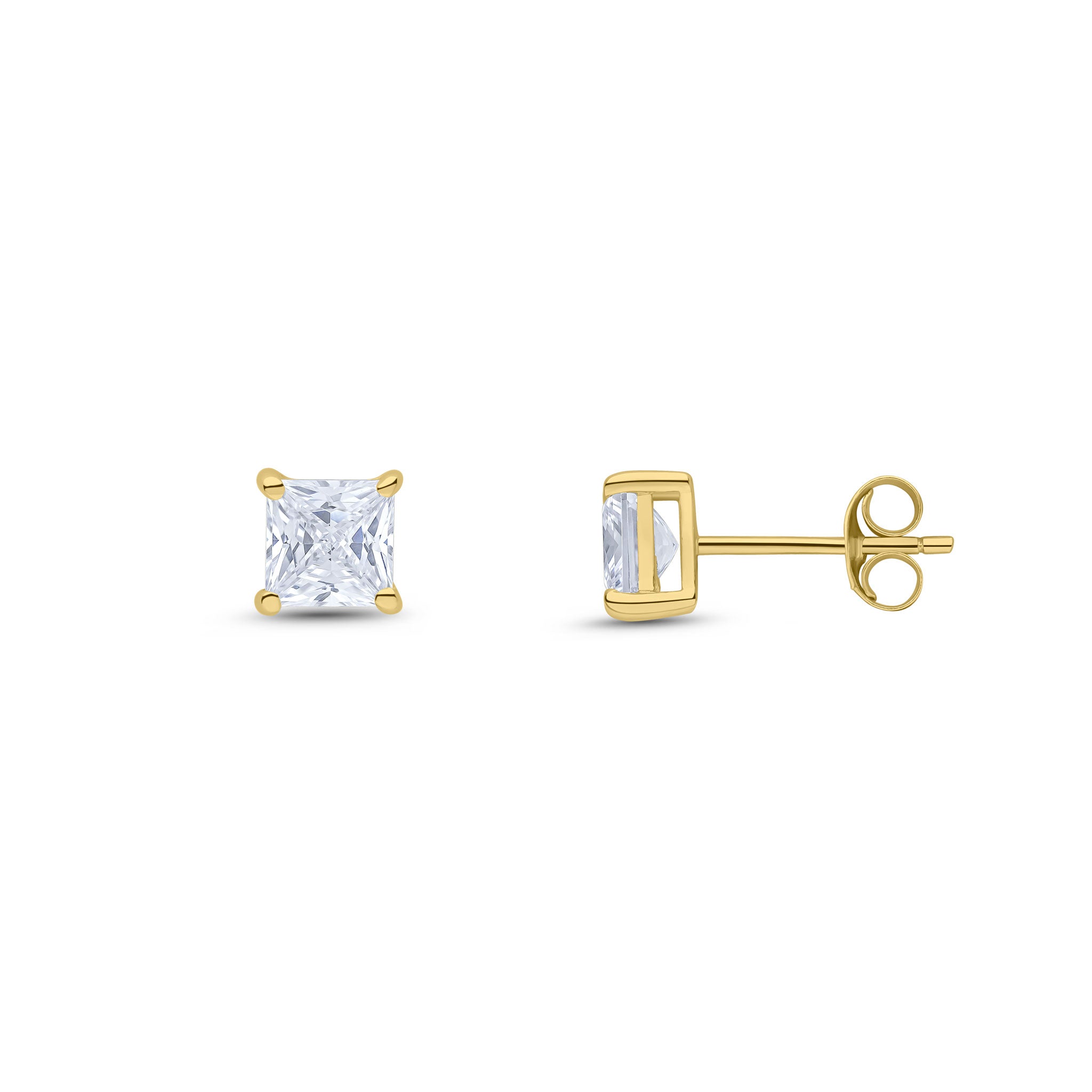 9CT Yellow Gold Square Cubic Zirconia CZ Claw Stud Earrings 5mm
