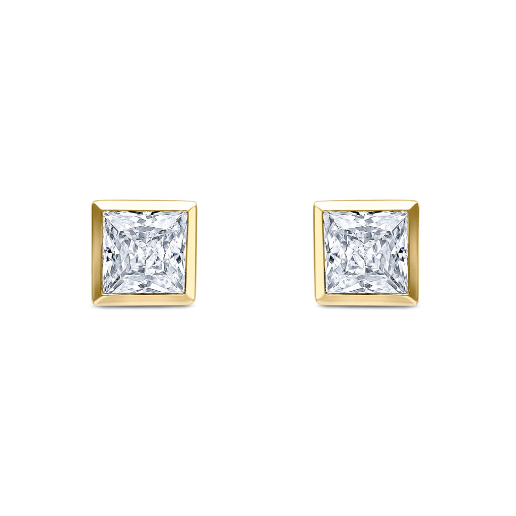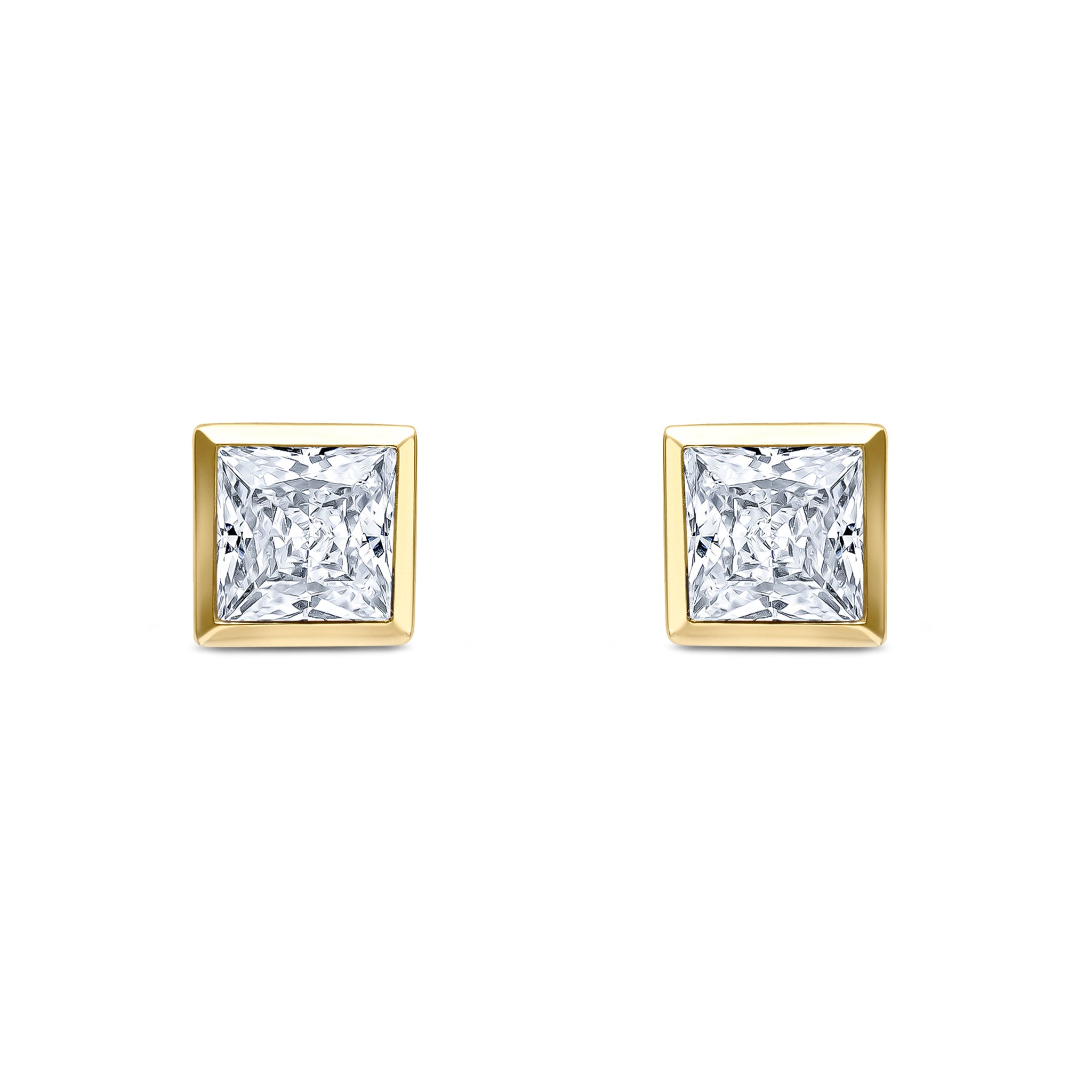 9CT Yellow Gold Square Cubic Zirconia CZ Rubover Stud Earrings 5mm