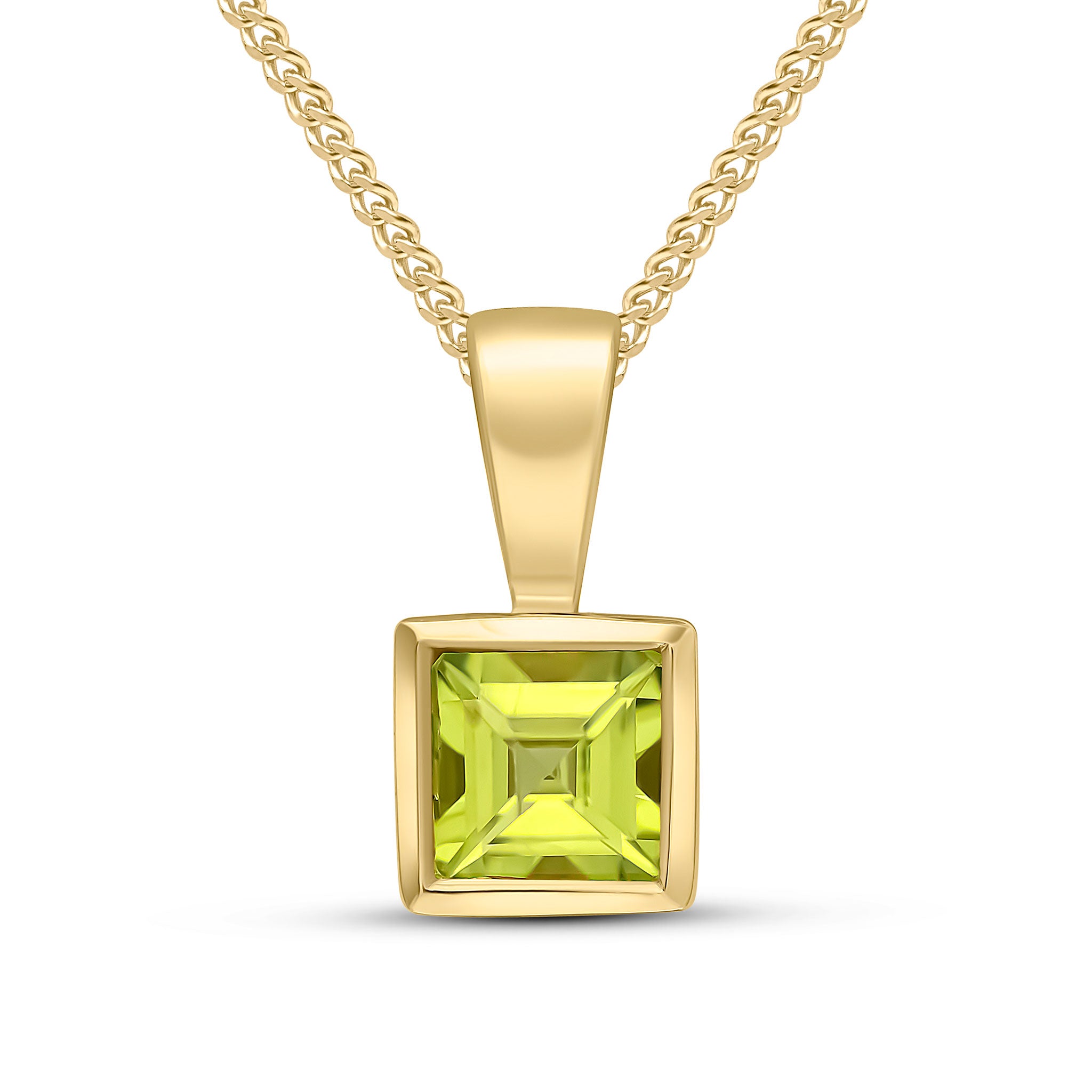 9CT Yellow Gold Square Peridot Rubover Pendant 4mm