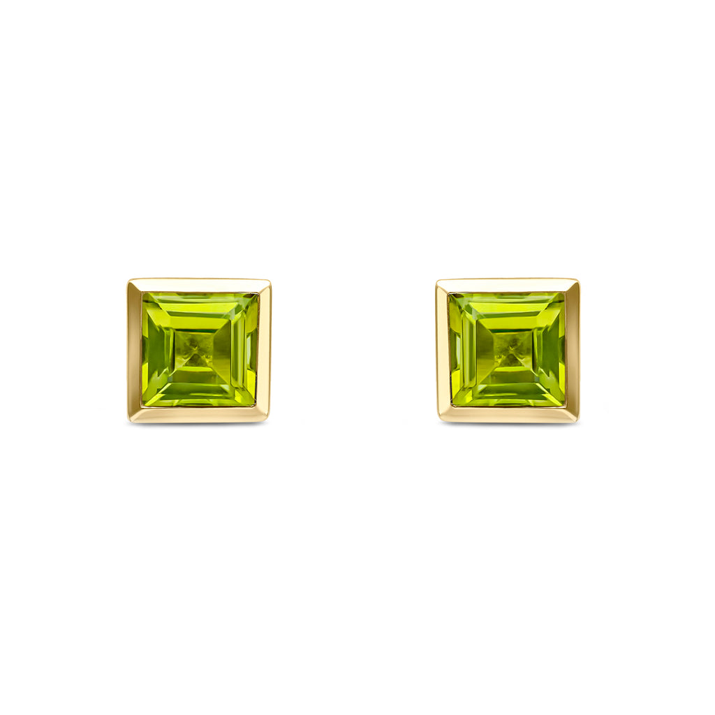 9CT Yellow Gold Square Peridot Rubover Stud Earrings 5mm