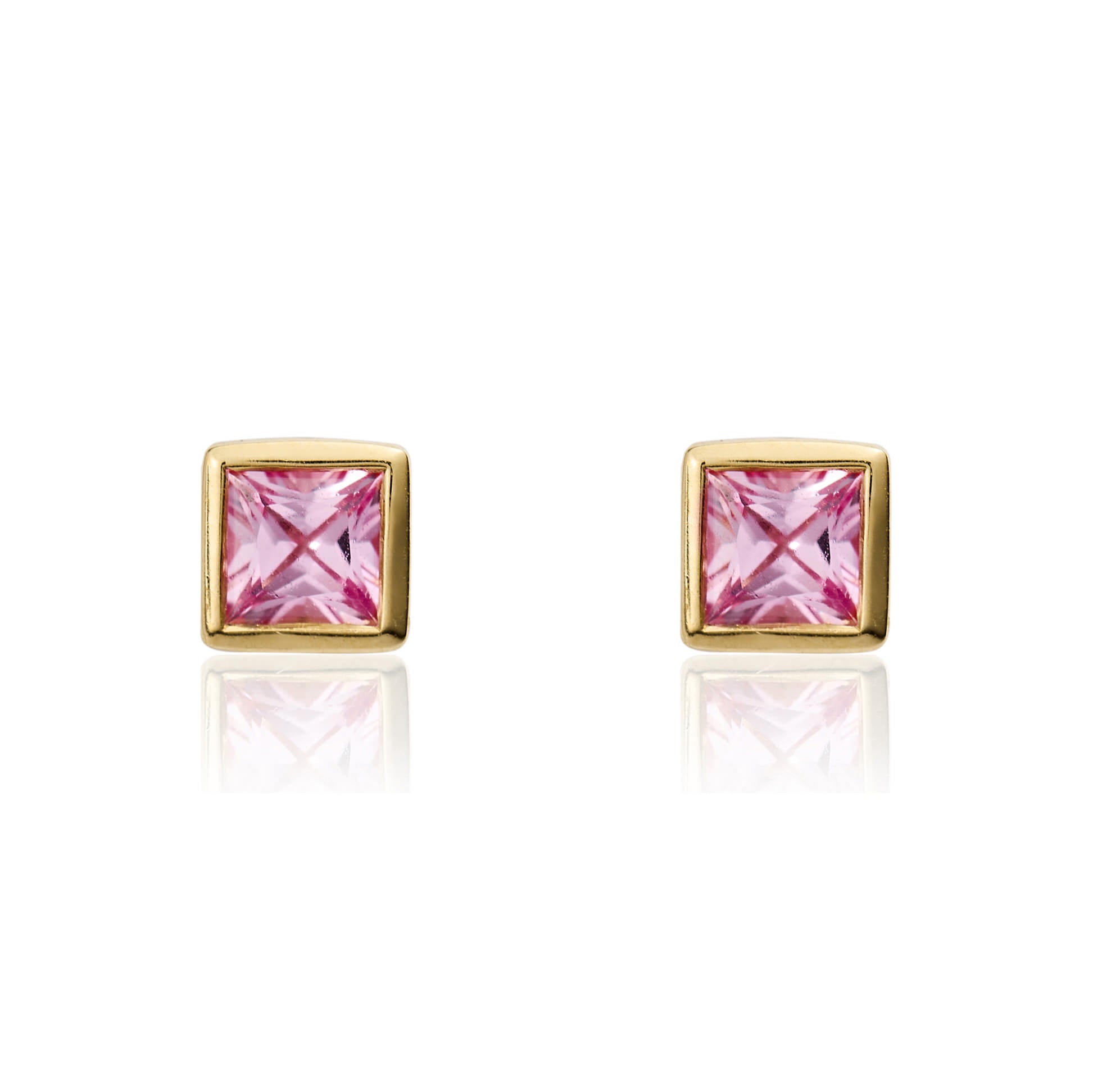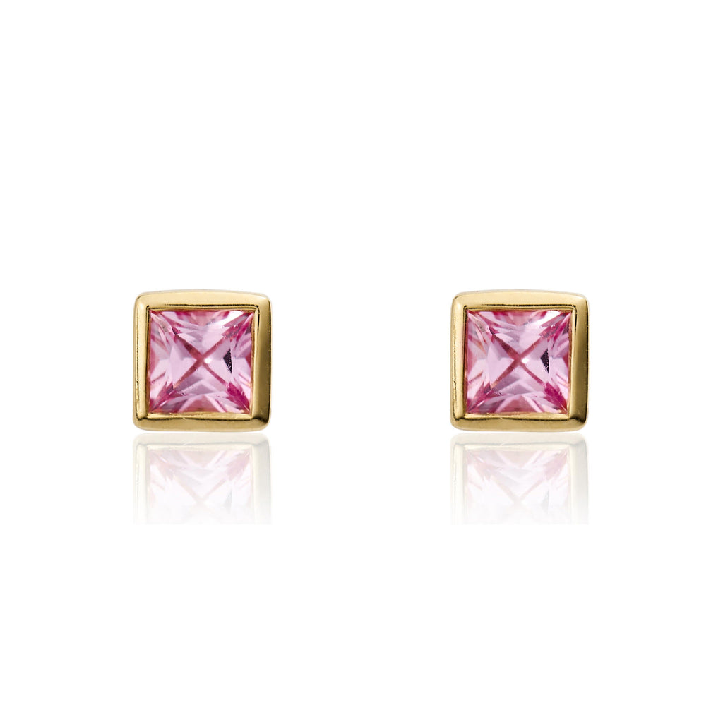9CT Yellow Gold Square Pink Sapphire Rubover Stud Earrings 3mm