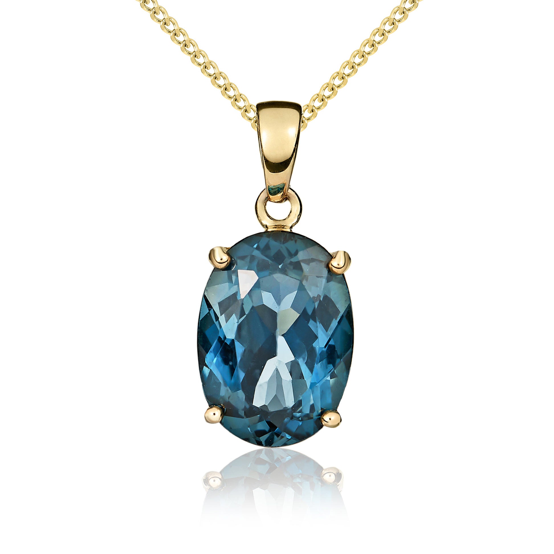 9CT Yellow Gold Oval London Blue Topaz Claw Pendant 14x10mm