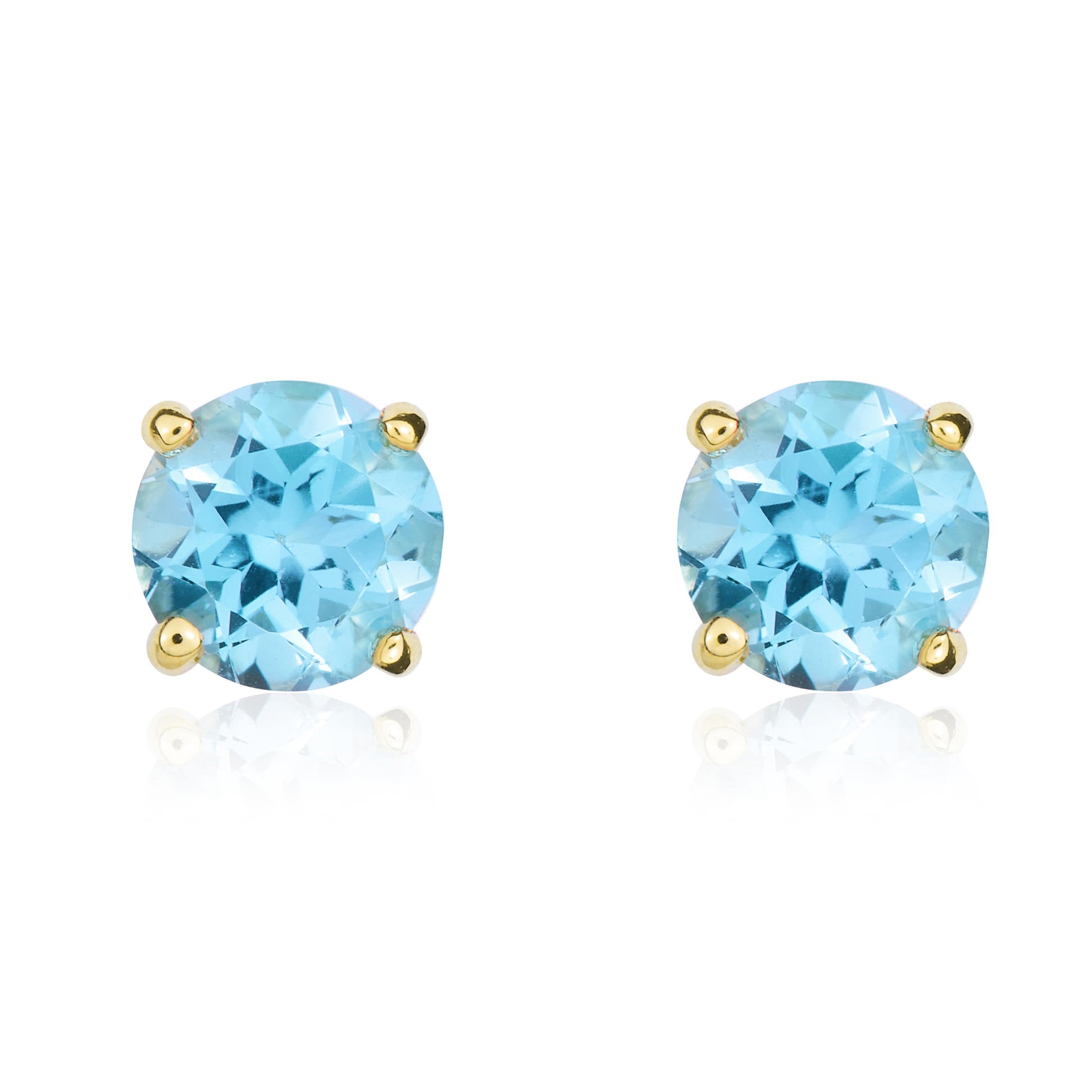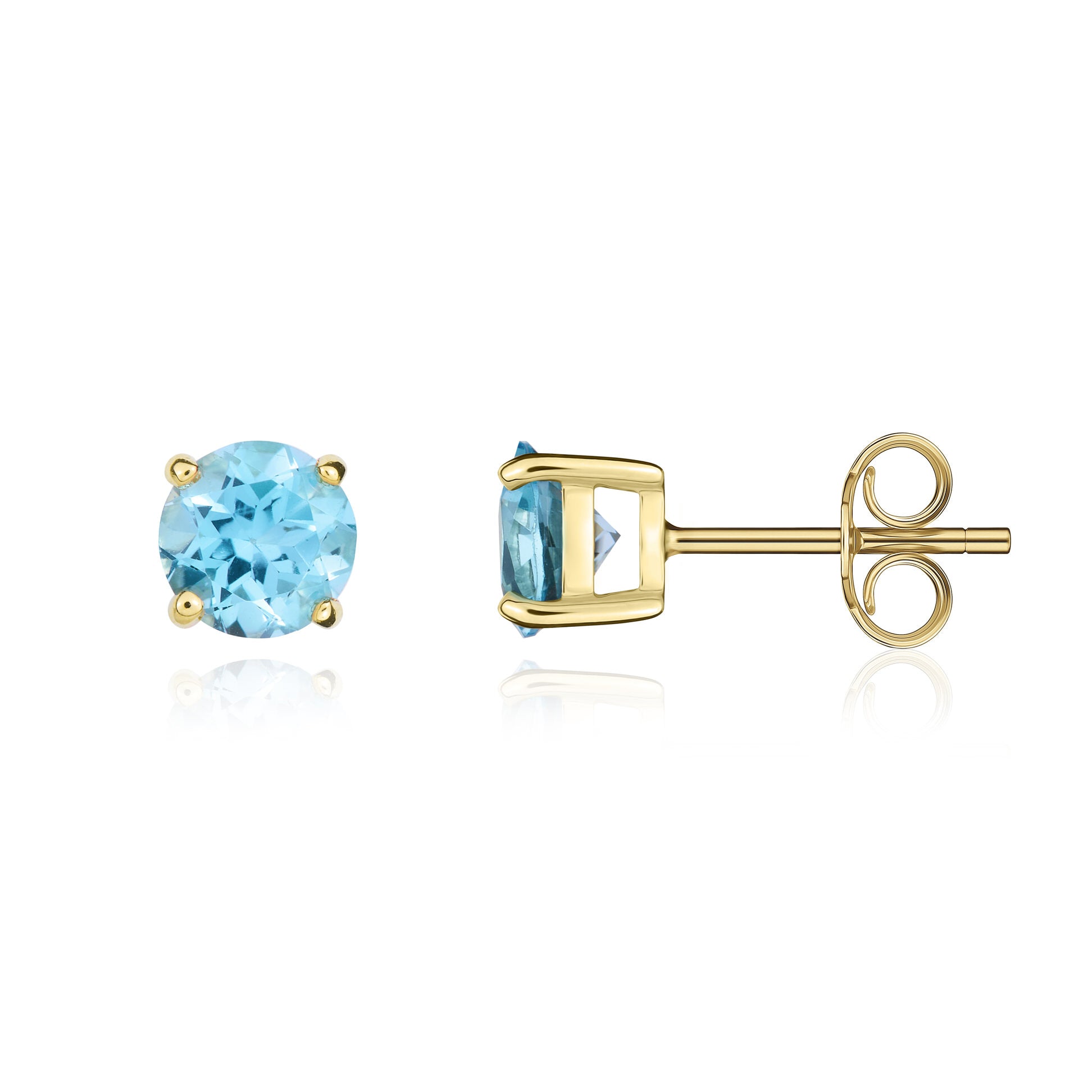 9CT Yellow Gold Round Swiss Blue Topaz Claw Stud Earrings 5mm