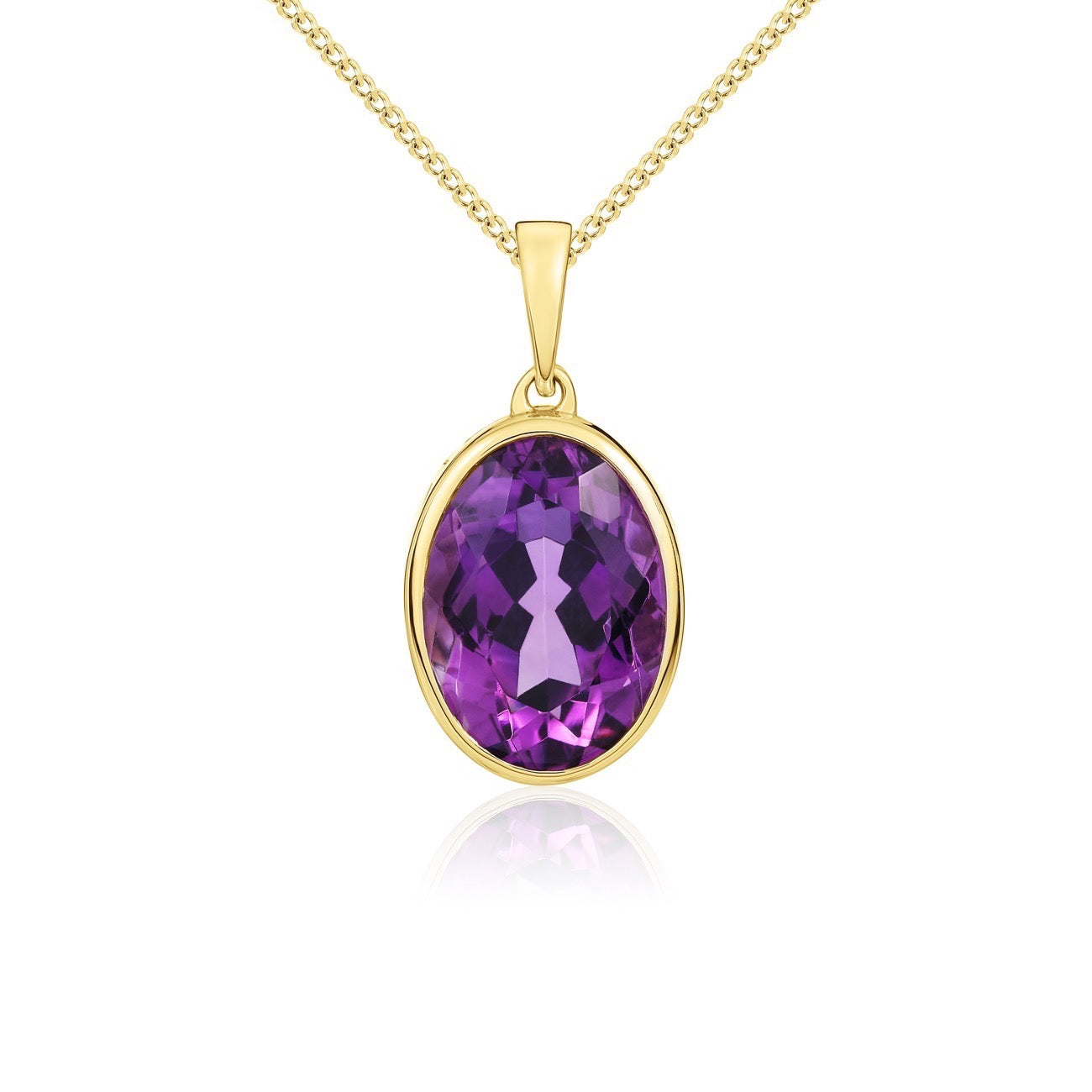 9CT Yellow Gold Oval Amethyst Rubover Pendant 14x10mm