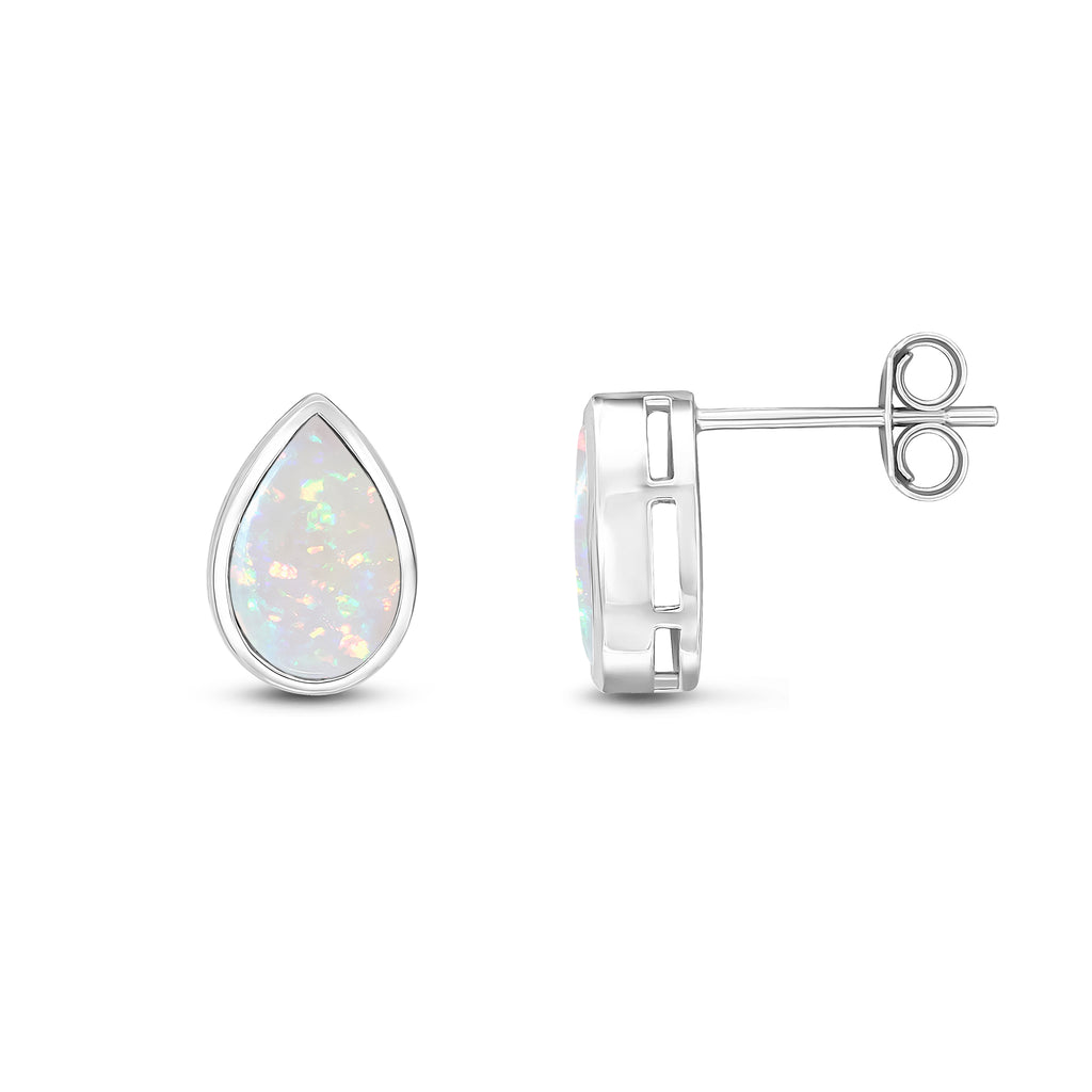 9CT White Gold Pear Shaped Opal Rubover Stud Earrings 9x6mm