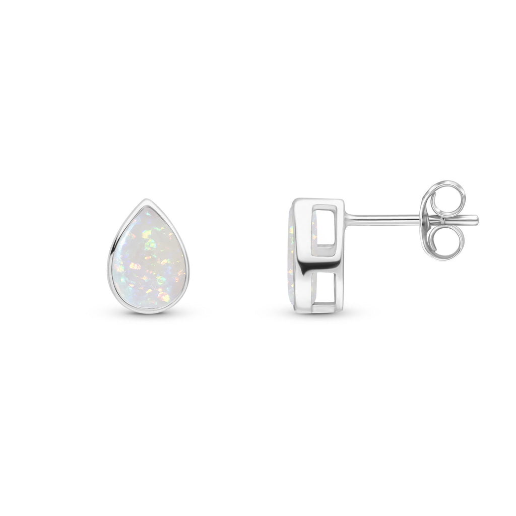 9CT White Gold Pear Shaped Opal Rubover Stud Earrings 7x5mm