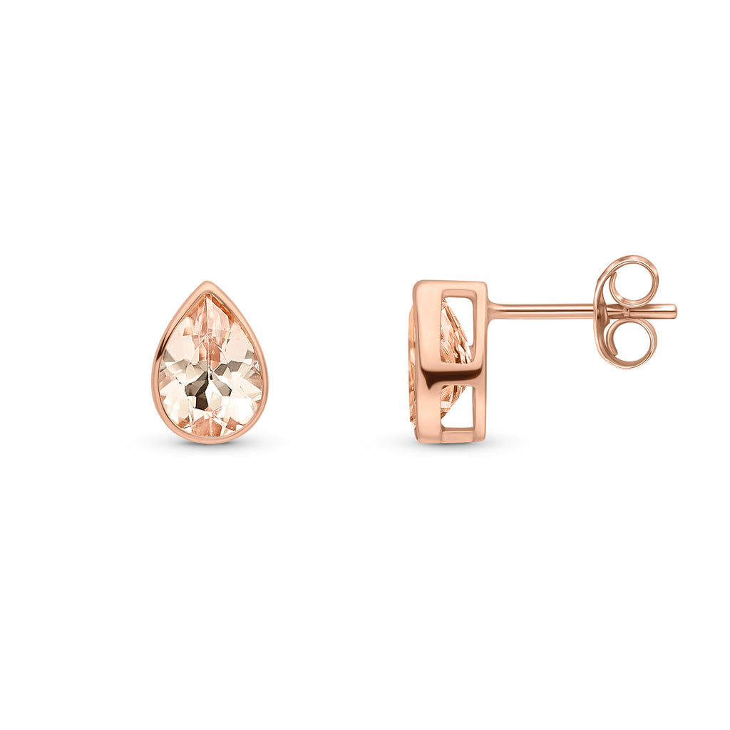 9CT Rose Gold Pear Shaped Morganite Rubover Stud Earrings 7x5mm