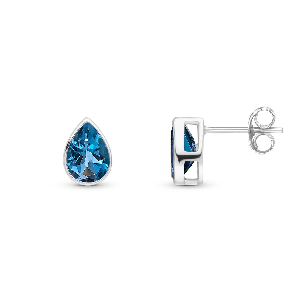 9CT White Gold Pear Shaped London Blue Topaz Rubover Stud Earrings 7x5mm