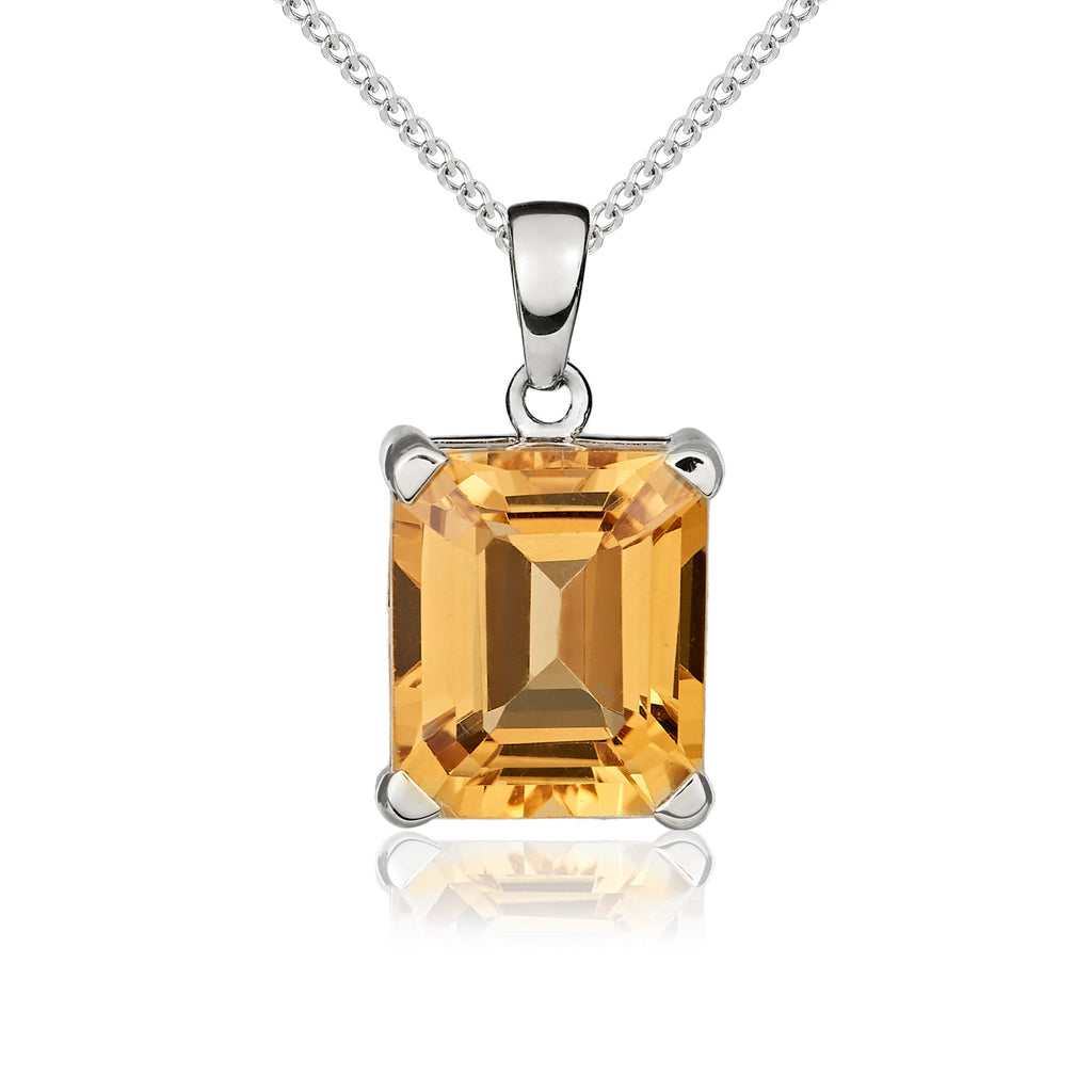 9CT White Gold Octagonal Citrine Claw Pendant 12x10mm