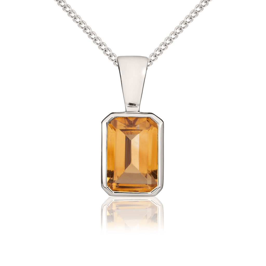 9CT White Gold Octagonal Citrine Rubover Pendant 7x5mm