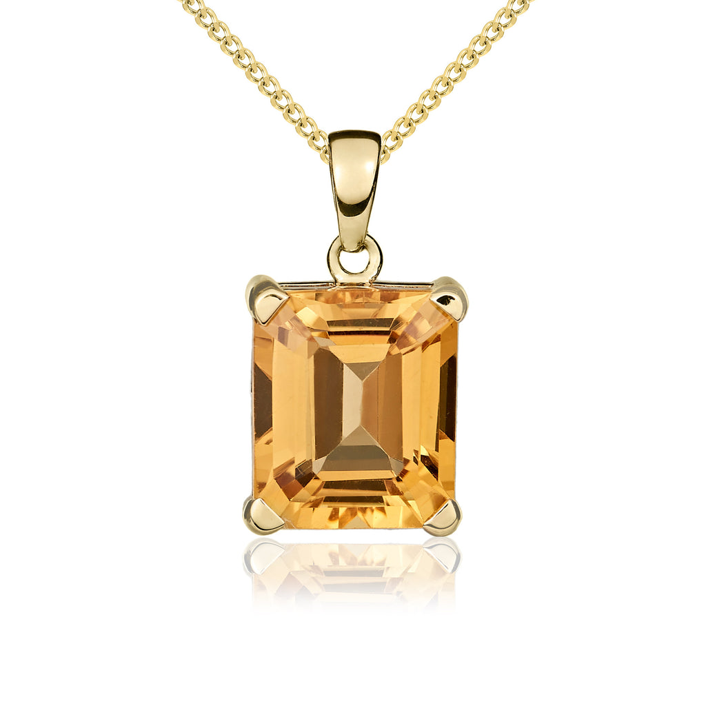 9CT Yellow Gold Octagonal Citrine Claw Pendant 12x10mm
