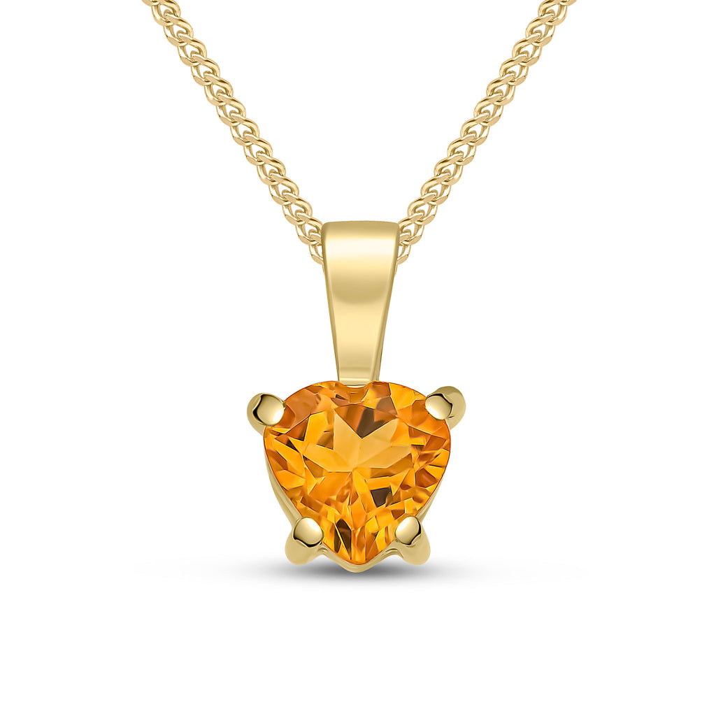 9CT Yellow Gold Heart Citrine Claw Pendant 6mm