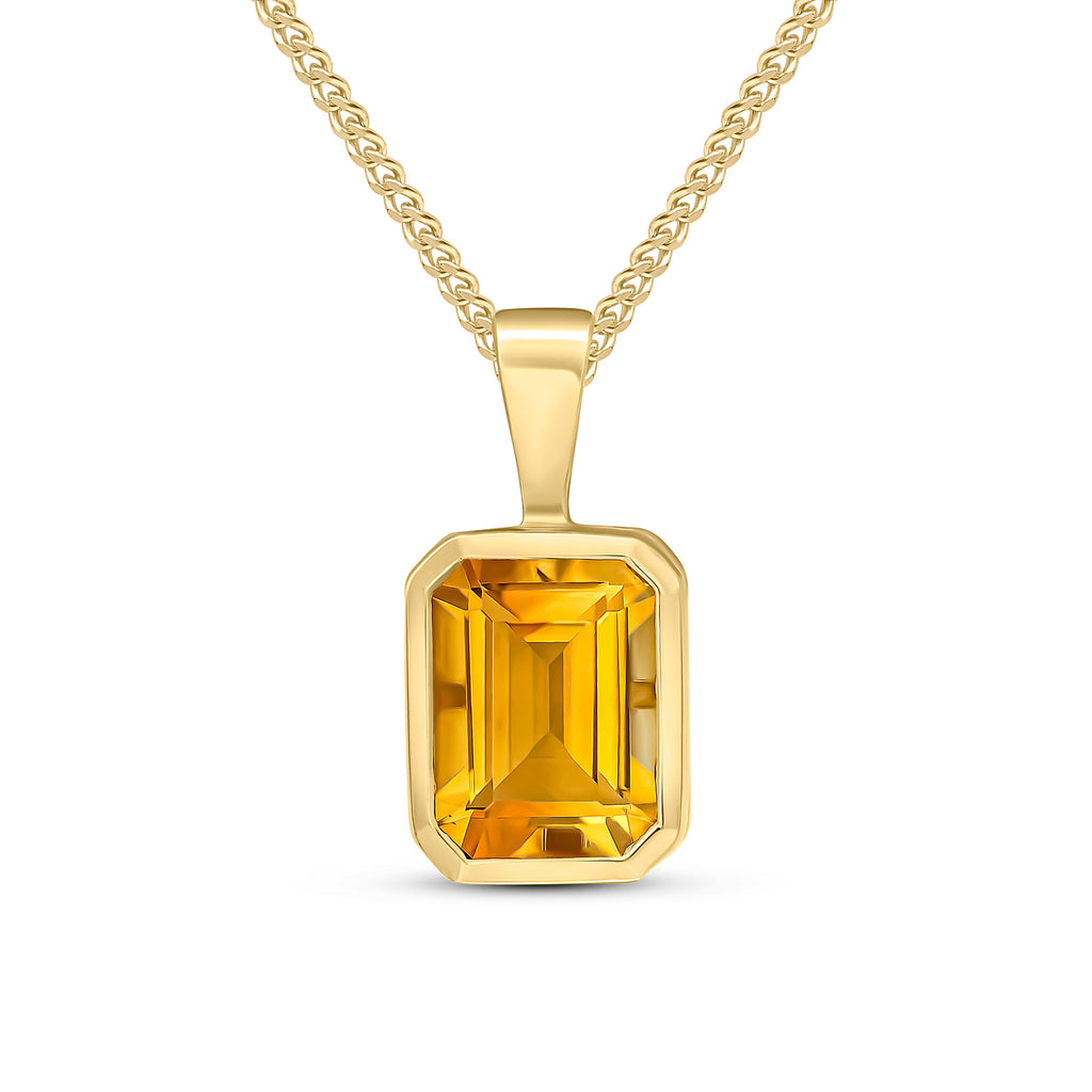 9CT Yellow Gold Octagonal Citrine Rubover Pendant 8x6mm