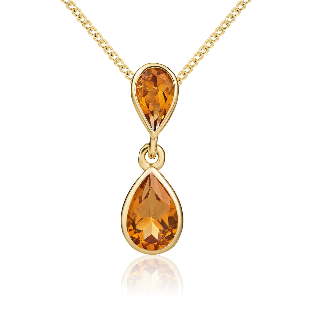 9CT Yellow Gold Pear Shaped Citrine Rubover Double Drop Pendant