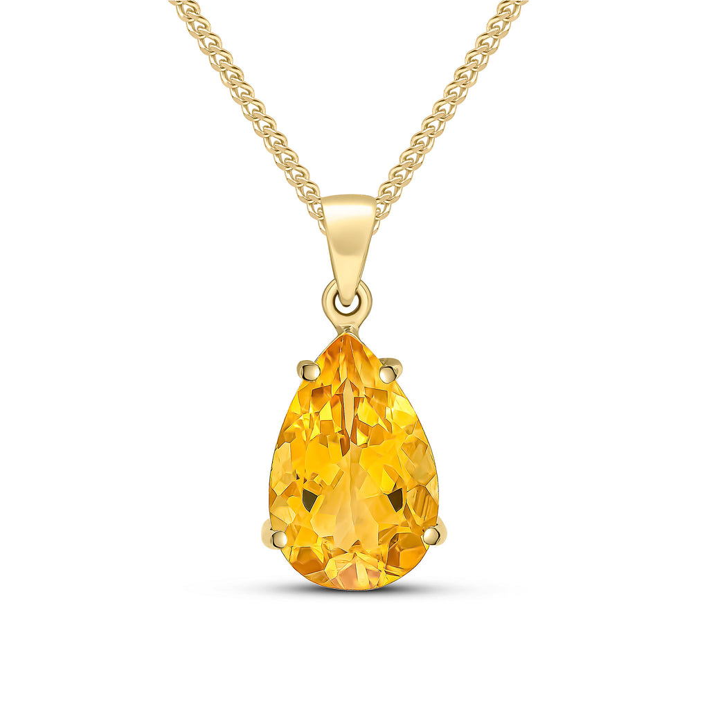 9CT Yellow Gold Pear Shaped Citrine Claw Pendant 14x9mm