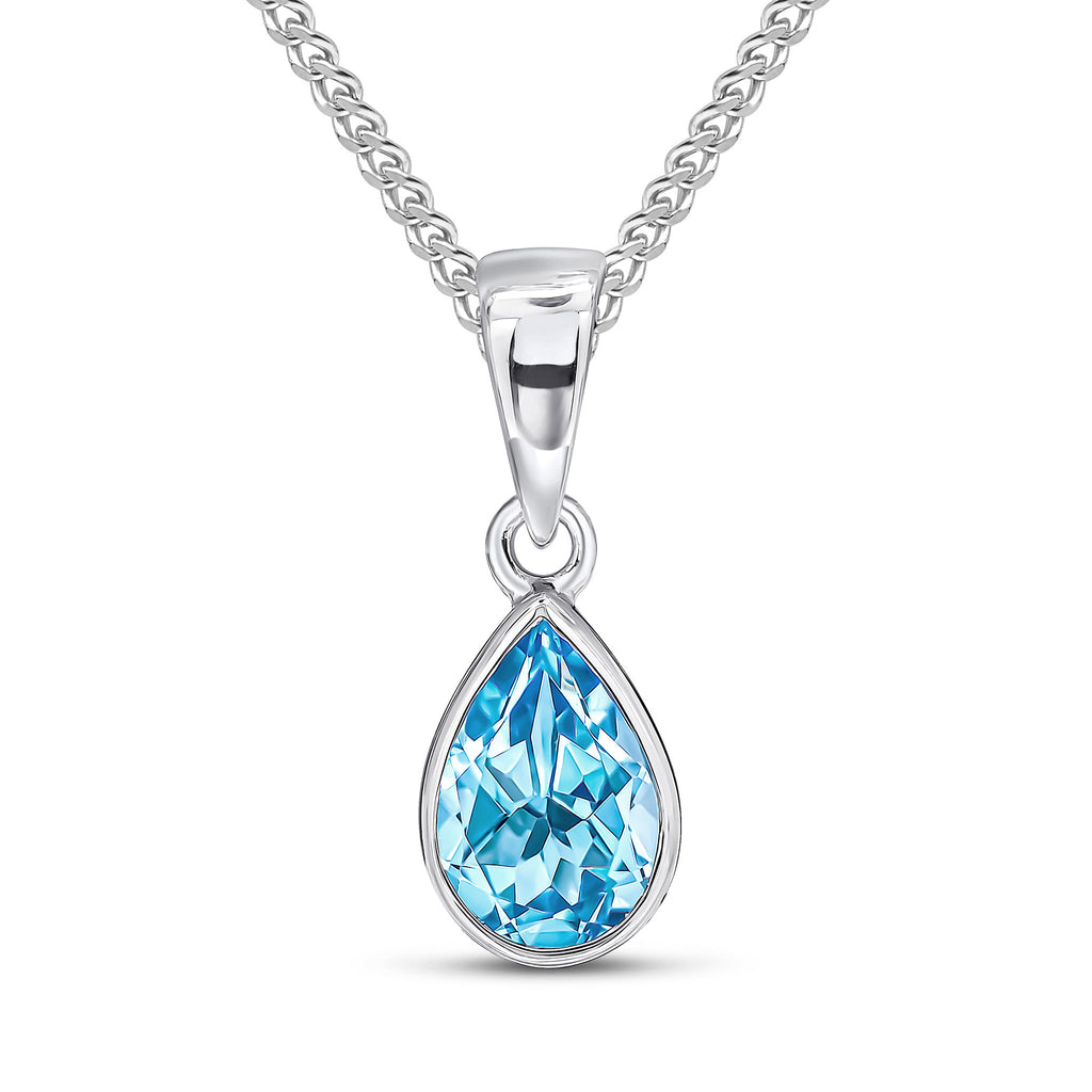 9CT White Gold Pear Shaped Swiss Blue Topaz Rubover Pendant 7x5mm