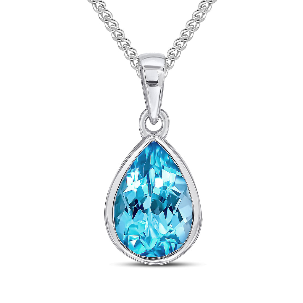 9CT White Gold Pear Shaped Swiss Blue Topaz Rubover Pendant 10x7mm