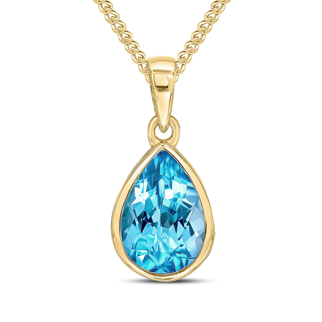 9CT Yellow Gold Pear Shaped Swiss Blue Topaz Rubover Pendant 10x7mm