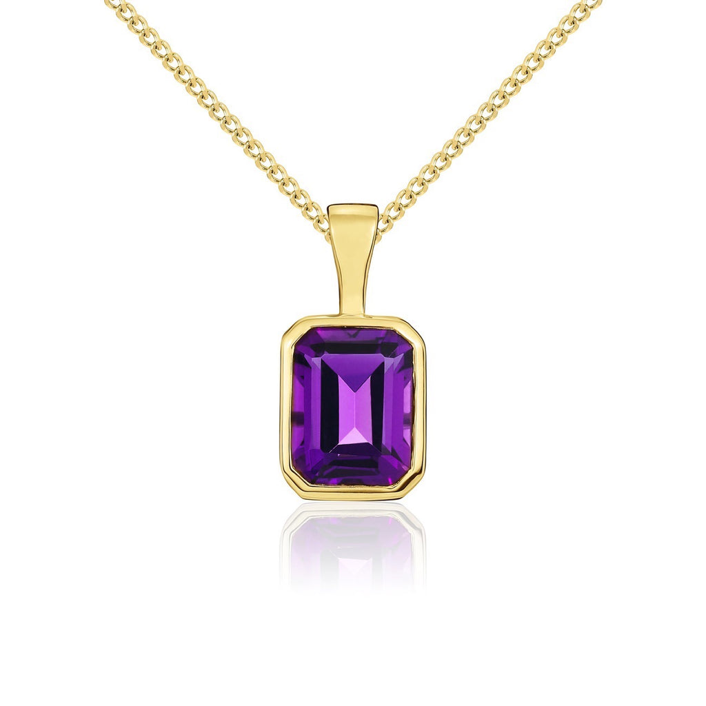9CT Yellow Gold Octagonal Amethyst Rubover Pendant 8x6mm
